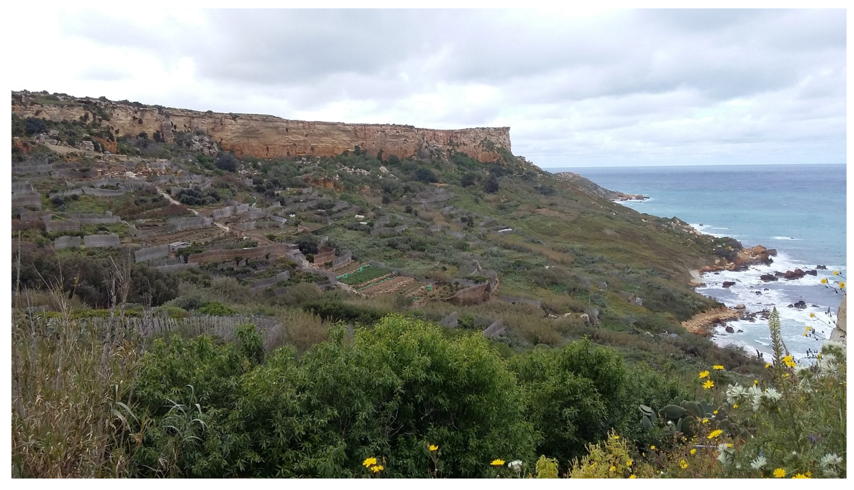 Traditional dry-stone wall terracing dominates the topography of the San Blas-Binġemma valley. This spatial heterogeneity is reflected in the upper and marginal slopes, showing progressive abandonment with increasingly maquis vegetation, while some of the midslopes remain under seasonal cultivation.