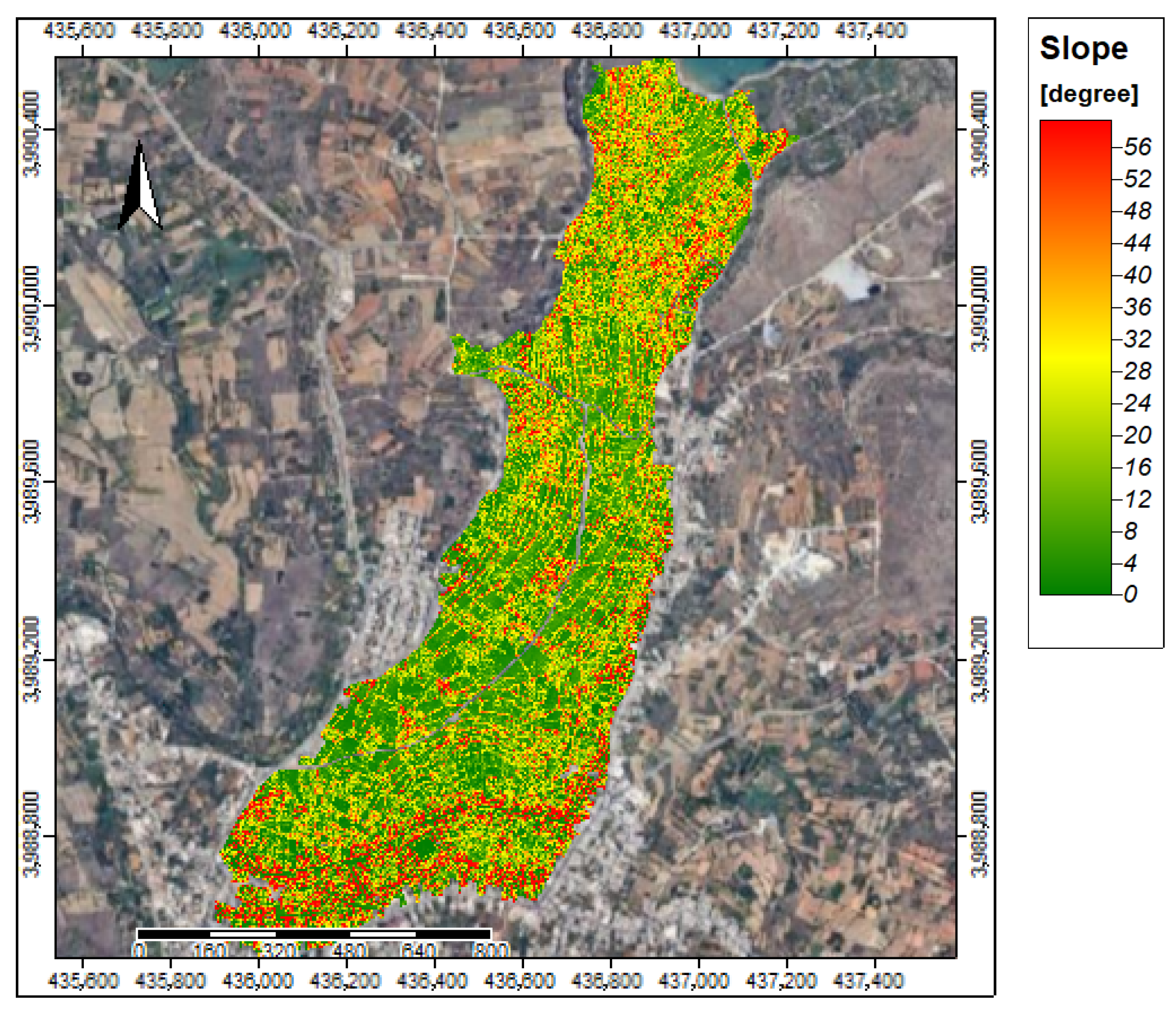 Table 4. These values were then added to the attribute table of the polygon layer, providing a spatial representation of soil erodibility across the valley.