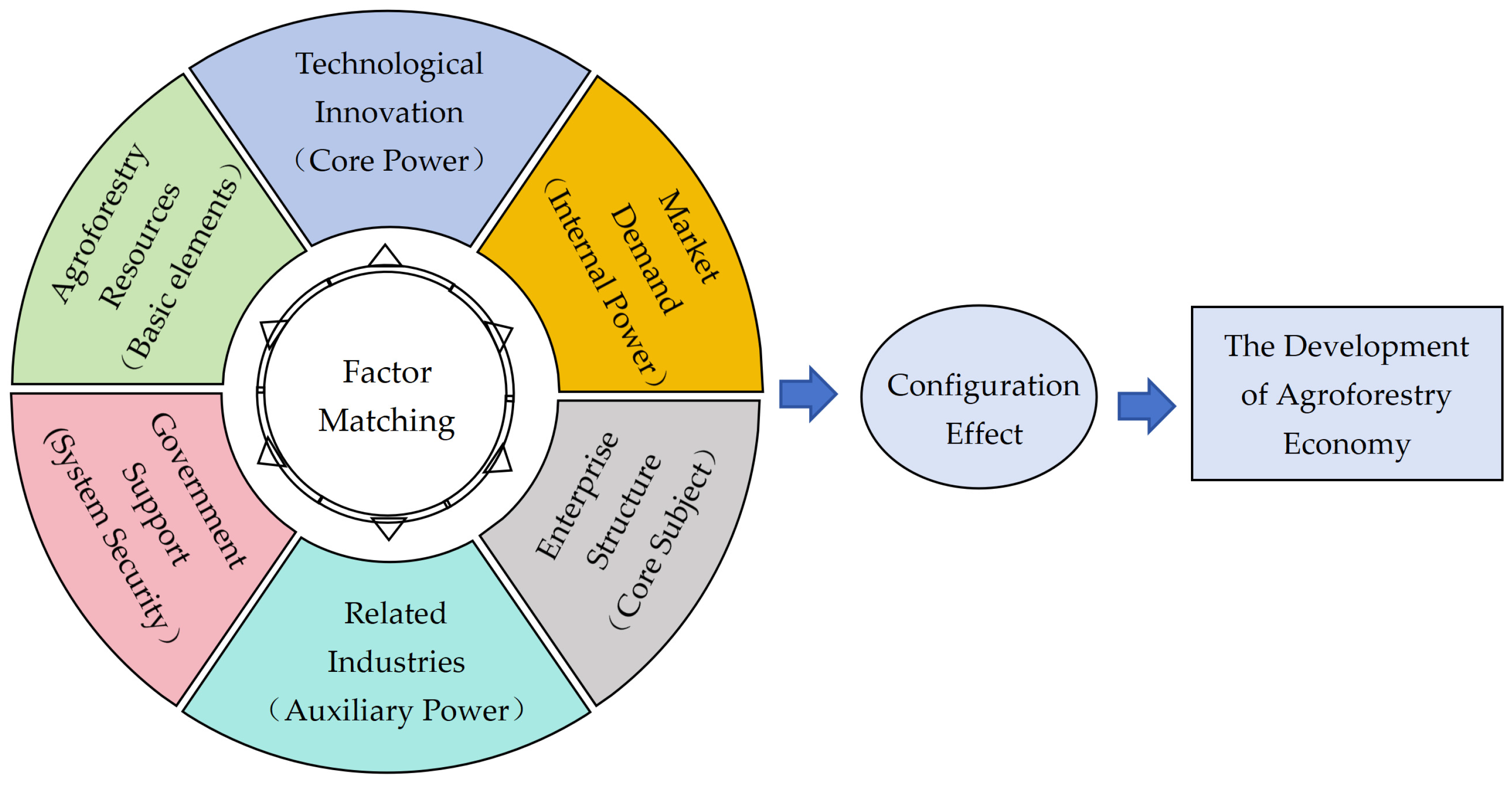 | The Development of Agroforestry Economy | Agroforestry Resources | Technological Innovation | Market Demand | Enterprise Form | Related Industries | Government Support |