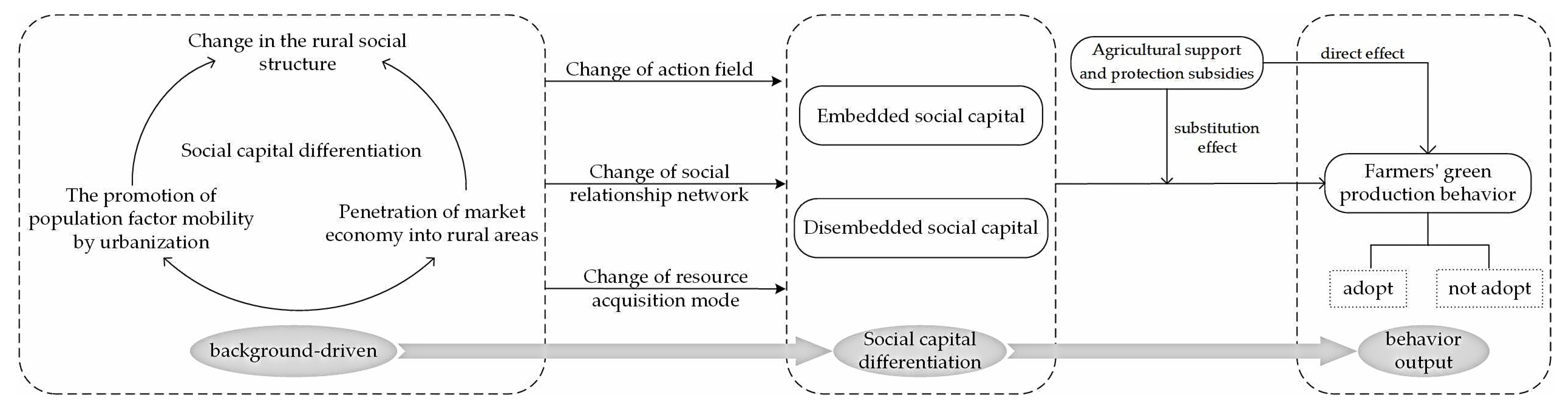 2.1. The Impact of Social Capital on Farmers’ Green Production Behavior
