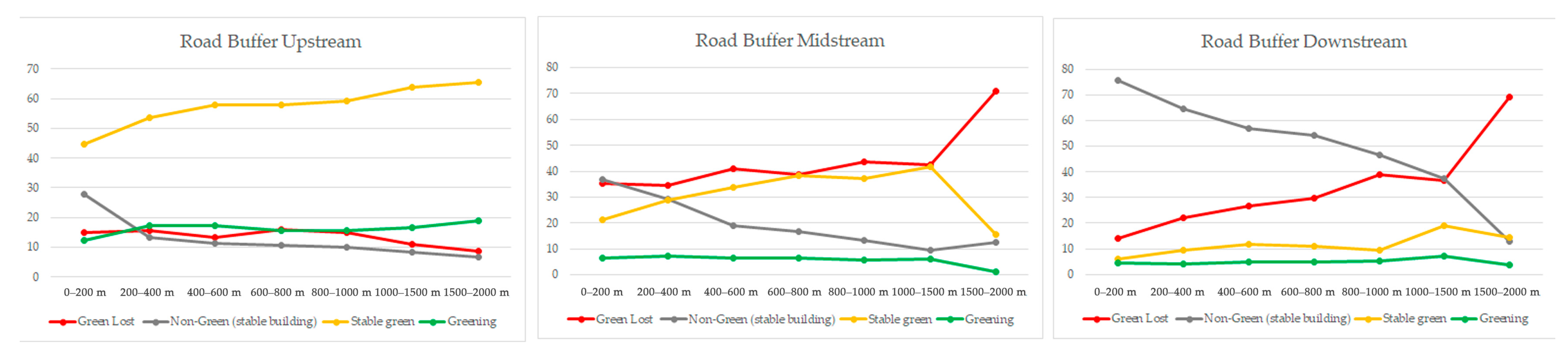 Figure 9. Upstream road buffer graphs.