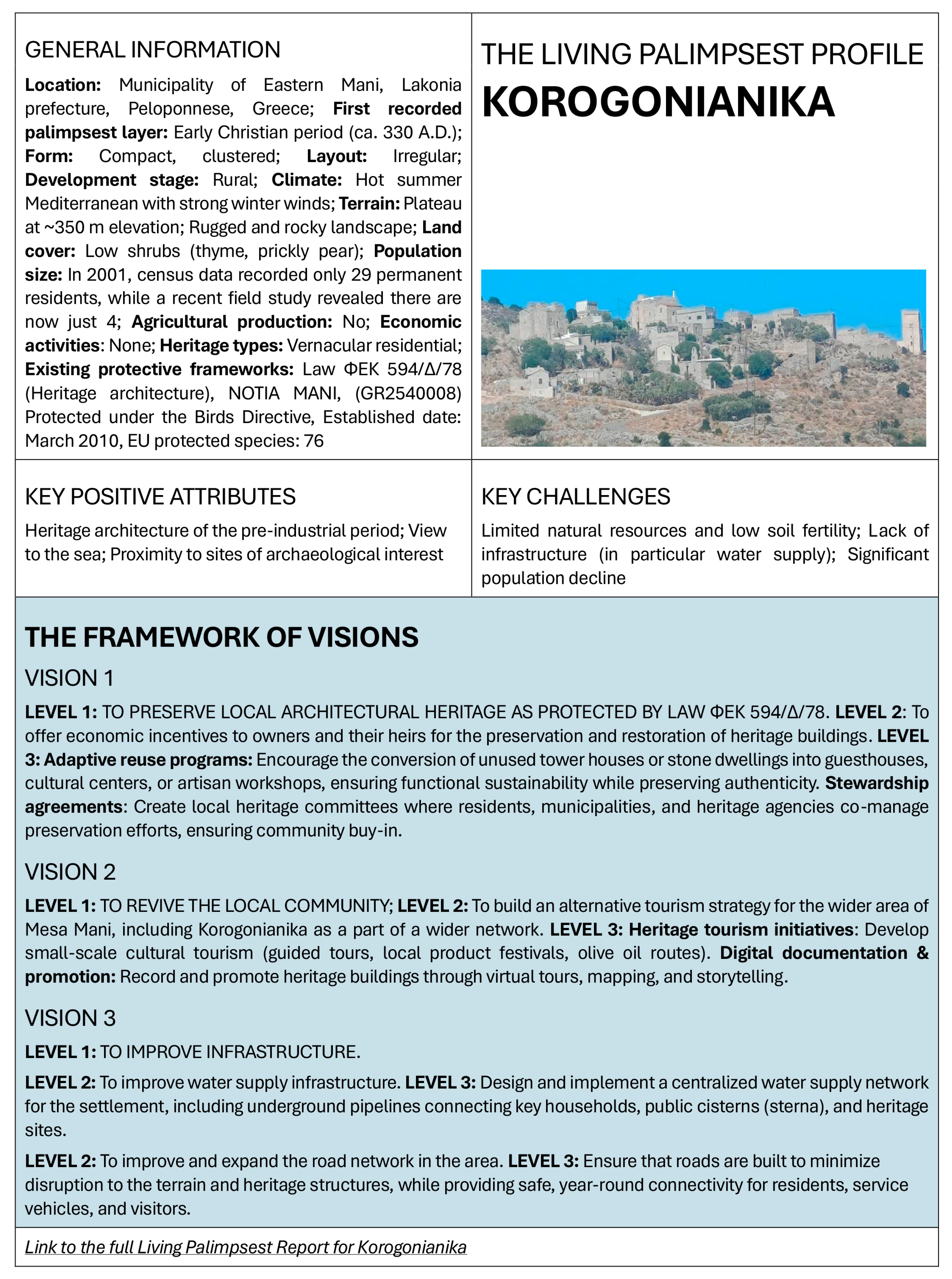 Kosanović, S.; Tousi, E.; Gvozdić, M.; Marković, Đ.; Papantoniou, P.; Hloupis, G. The Living Palimpsest Profile: An Integrated Assessment Framework for Vernacular Rural Settlements. Land 2025, 14, 2130. https://doi.org/10.3390/land14112130