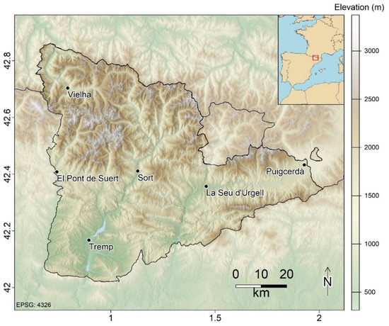 As and Sl (Figure 4) were fundamental factors for crop cultivation, affecting the amount of solar radiation reaching the soil. Slope increases the hours of daily sunshine but, on the other hand, limits mechanization and increases erosion when it is very steep [32]. The findings demonstrated a clear delineation of areas that were conducive to optimal solar radiation absorption (South/South-east) and those that were less favorable (North). Valleys exhibit marked disparities in orientation due to their predominant north–south alignment, except for the Cerdanya valley (situated eastward within the study region), which is uniquely oriented from east to west, and thereby receives increased solar radiation influx compared to other valleys in the Pyrenees region.