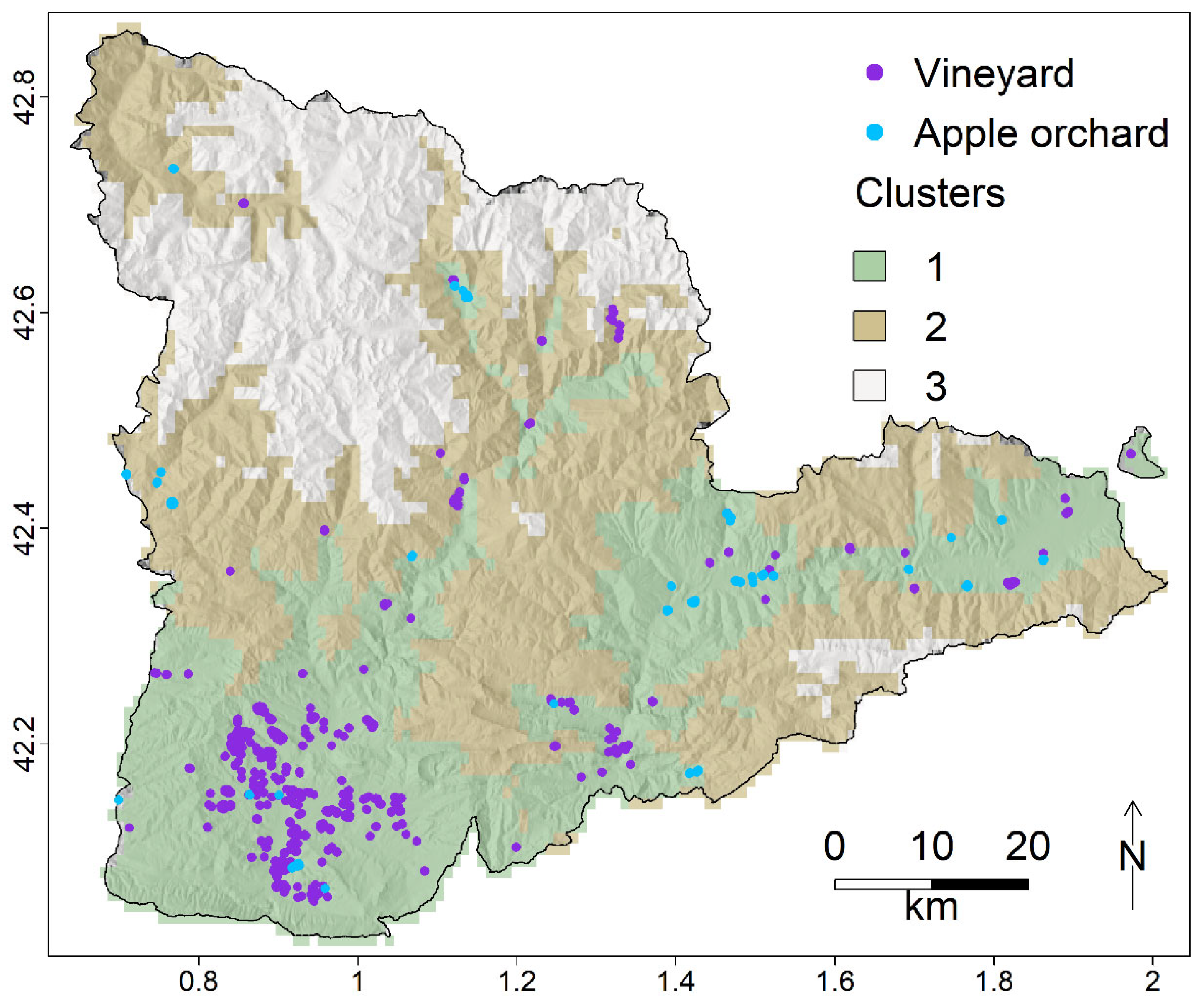 APA StyleCasadó-Tortosa, A., de Herralde, F., Savé, R., Peris, M., Lordan, J., Sánchez-Ortiz, A., Sánchez-Costa, E., Barbeta, A., & Funes, I. (2025). GIS-Based Approach for Modeling Vineyard and Apple Orchard Suitability in Mountainous Regions. Land, 14(11), 2135. https://doi.org/10.3390/land14112135