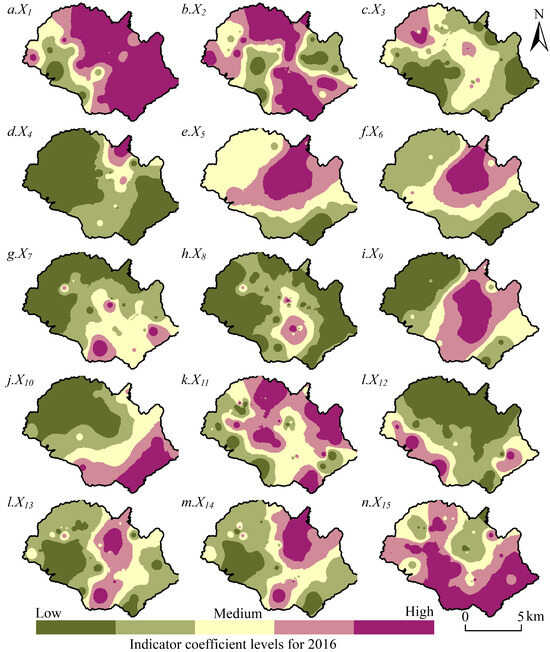 Specifically, in 2016, there were a total of 122 village patches in Yongcong Township, accounting for 0.98% of the township’s total area, 16.19% of its cultivated land, 0.80% of its garden land, and 0.013% of the established town. Field investigations revealed that Yongcong villages primarily used arable land, grasslands, and gardens for planting and farming, producing special products, such as rice-fish, tea, and vegetables. Arable land was concentrated in Pingyang and Jiguo villages; grasslands were prominent in Fear Cave, Pingmo, and Shanggao Gong; and garden land was most extensive in Pear Garden and Liangdao Shui. Functionality levels were highest in the Fear Cave and Shanggao Gaog villages. Although Pingyang and Jiguo had a larger share of arable land, their functionality scores were lower due to proximity to geological hazard sites.