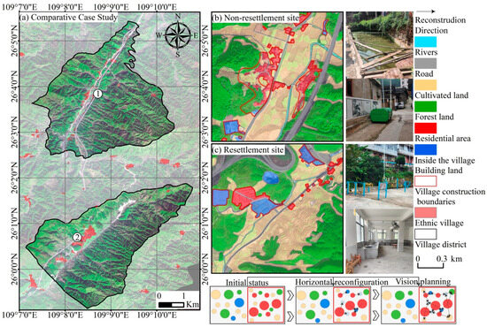 This study focuses on Yongcong Township, located in Liping County, Qiandongnan Miao and Dong Autonomous Prefecture, Guizhou Province, China. It analyses spatial and temporal changes in functionality and suitability levels and the evolution of spatial landscape patterns between 2016 and 2022. Typical and resettlement villages were identified based on functionality and suitability indices, and a comparative analysis of different reconstruction types was conducted to examine their characteristics, processes, and impacts. Although this period is short, it captures a phase of rapid transformation driven by China’s targeted rural development policies.