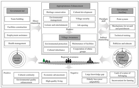 External factors, such as ethnic customs and identity, serve as external drivers influencing the trajectory and direction of reconstruction. In contrast, endogenous elements, including natural resources and land endowments, provide the foundational dynamics that support reconstruction efforts [42]. The restructuring of ethnic villages is thus shaped by both external socio-economic conditions and internal development needs. Through the integration of endogenous and exogenous resource elements, such as land, labor, and capital, and the ongoing optimization of landscape patterns, social networks, governance models, and cultural forms, ethnic villages transform physical, social, and cultural dimensions [43,44,45].
