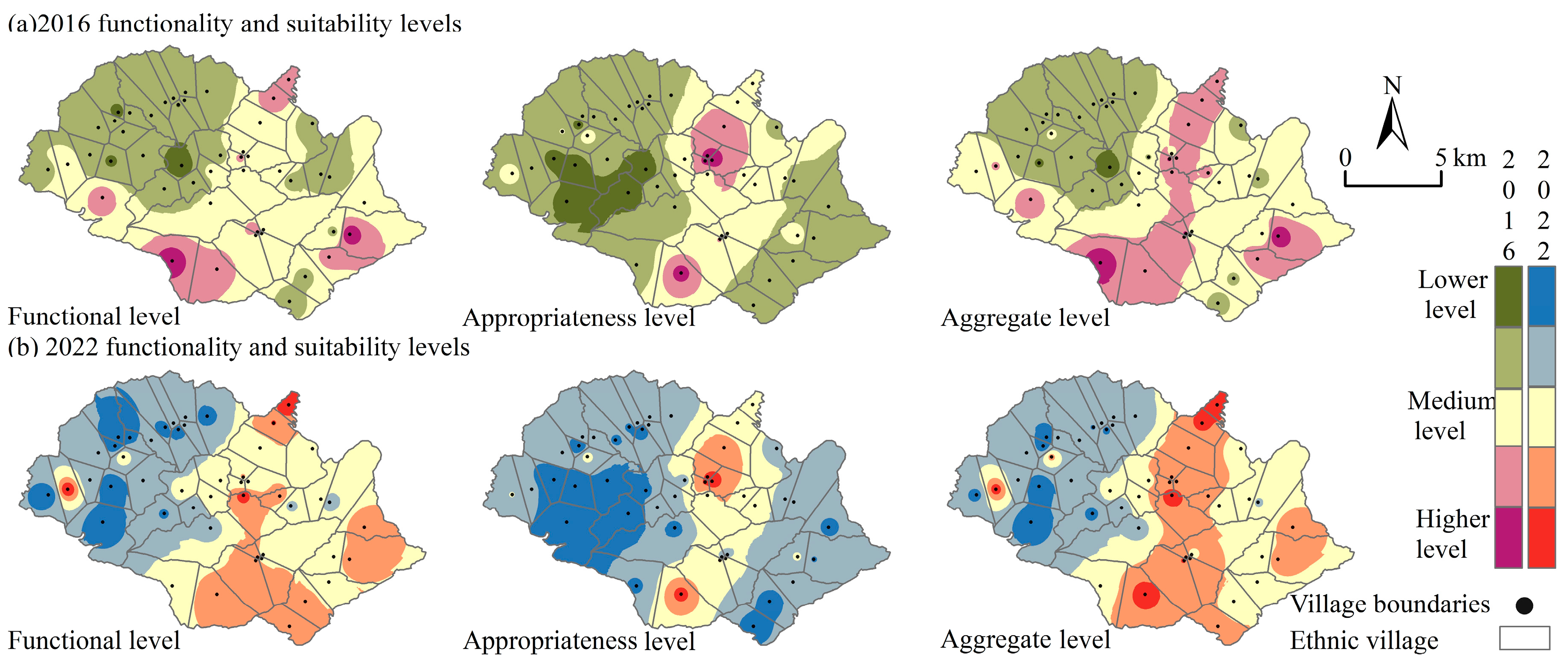 4.1. Functionality and Suitability Evaluation and Spatial Structure Evolution Characteristics of Ethnic Villages