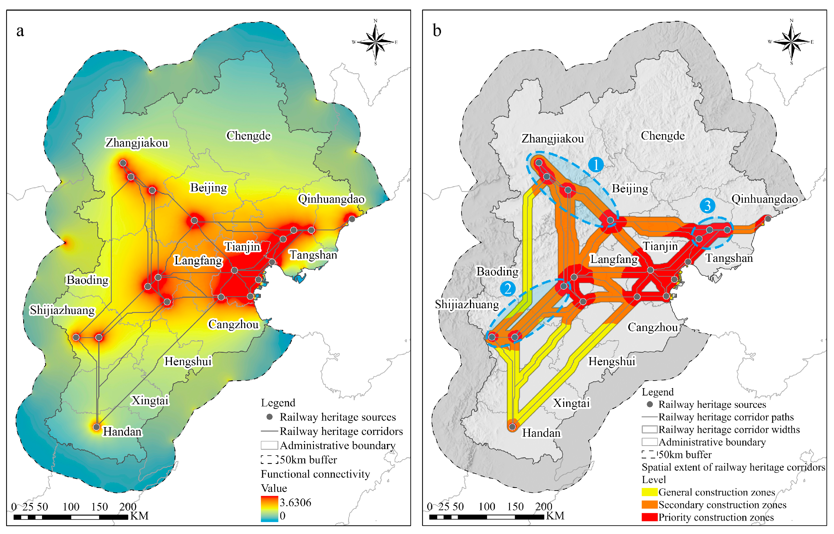 - Wang, C.; Ma, Q. Study on the Construction of the Beijing-Tianjin-Hebei Railway Heritage Corridor. J. Cap. Norm. Univ. Sci. Ed. 2017, 3, 71–78. [Google Scholar] [CrossRef]