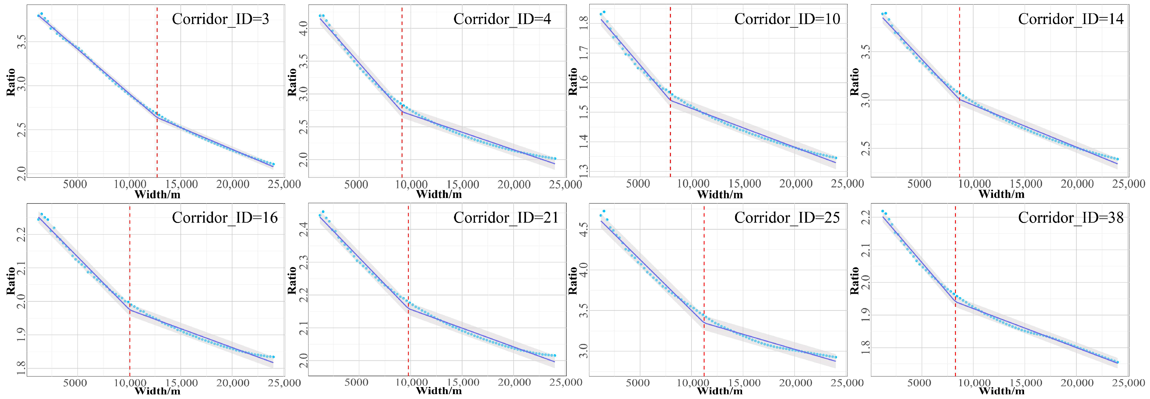 - Yu, H.; Xiao, H.; Gu, X. Integrating Species Distribution and Piecewise Linear Regression Model to Identify Functional Connectivity Thresholds to Delimit Urban Ecological Corridors. Comput. Environ. Urban Syst. 2024, 113, 102177. [Google Scholar] [CrossRef]