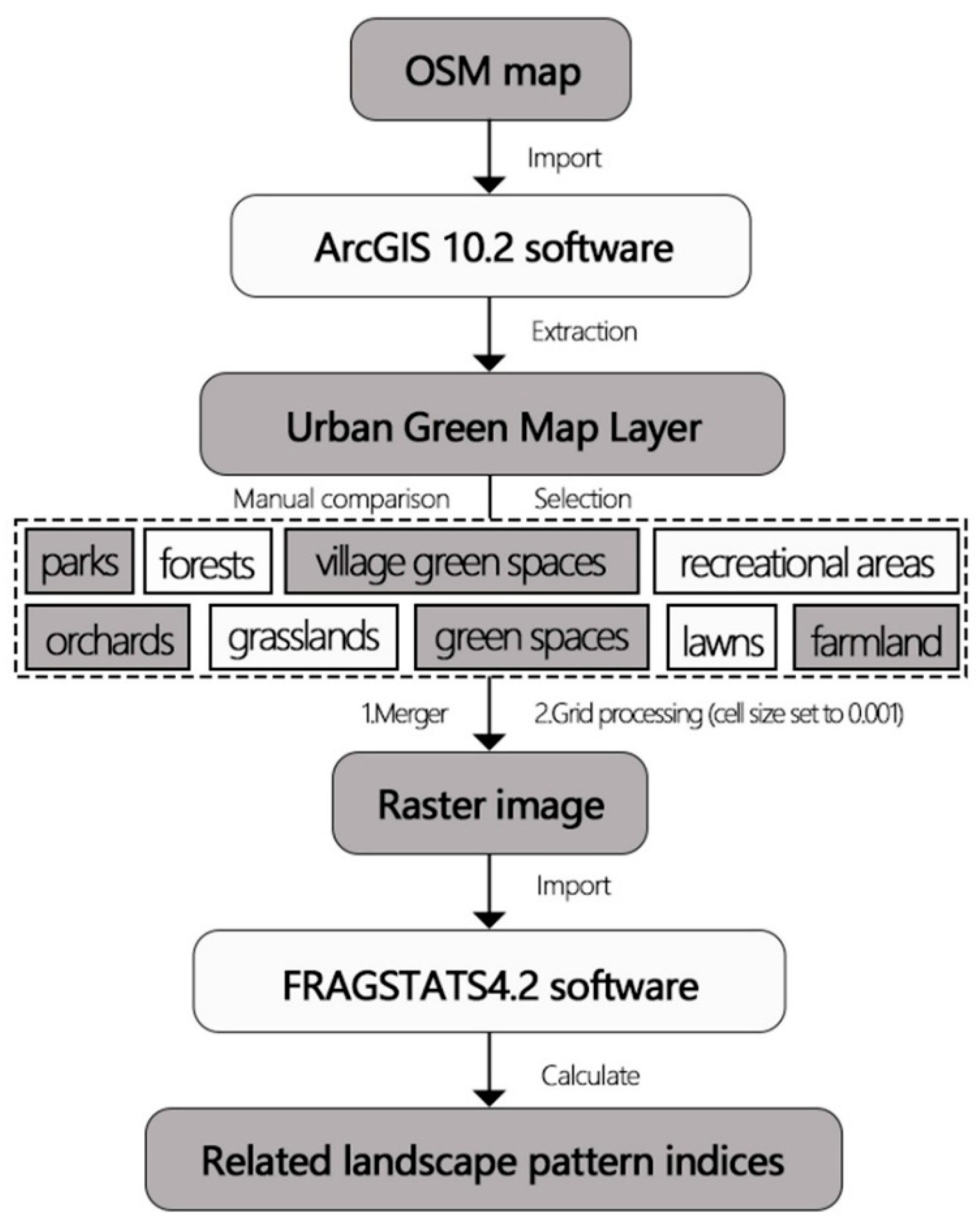 2.2.2. Quantification of Urban Green Space Morphological Structure Characteristics