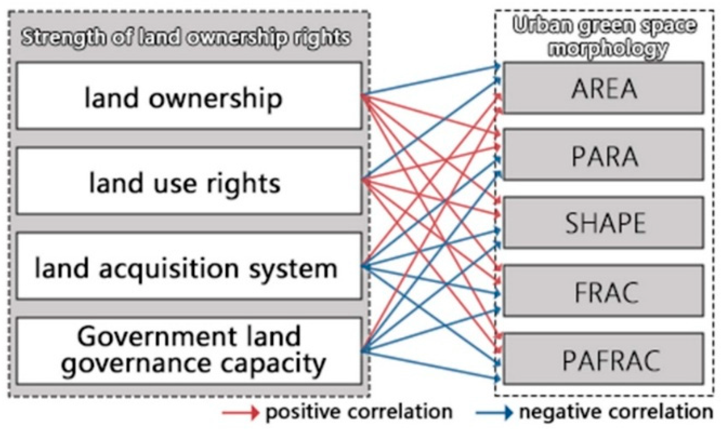 Zhou H, Li Y, Su X, Xie M, Zhang K, Wang X. The Impact of Land Tenure Strength on Urban Green Space Morphology: A Global Multi-City Analysis Based on Landscape Metrics. Land. 2025; 14(11):2140. https://doi.org/10.3390/land14112140