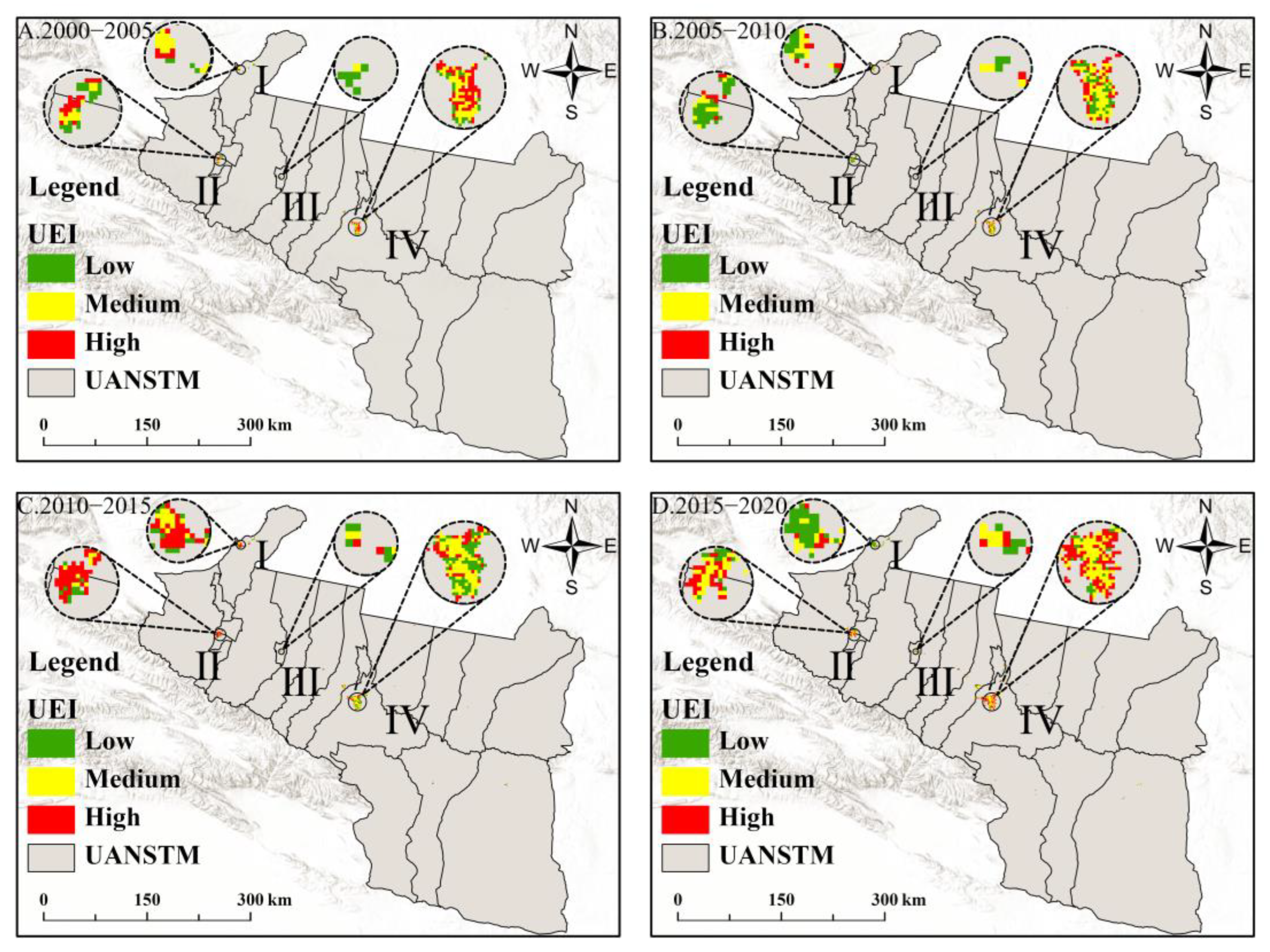 APA StyleZhang, Y., Kasimu, A., Zhang, X., Song, N., Shayiti, B., & An, X. (2025). Spatiotemporal Decoupling of Urban Expansion Intensity and Land Use Efficiency in Arid Oasis Agglomerations. Land, 14(11), 2143. https://doi.org/10.3390/land14112143