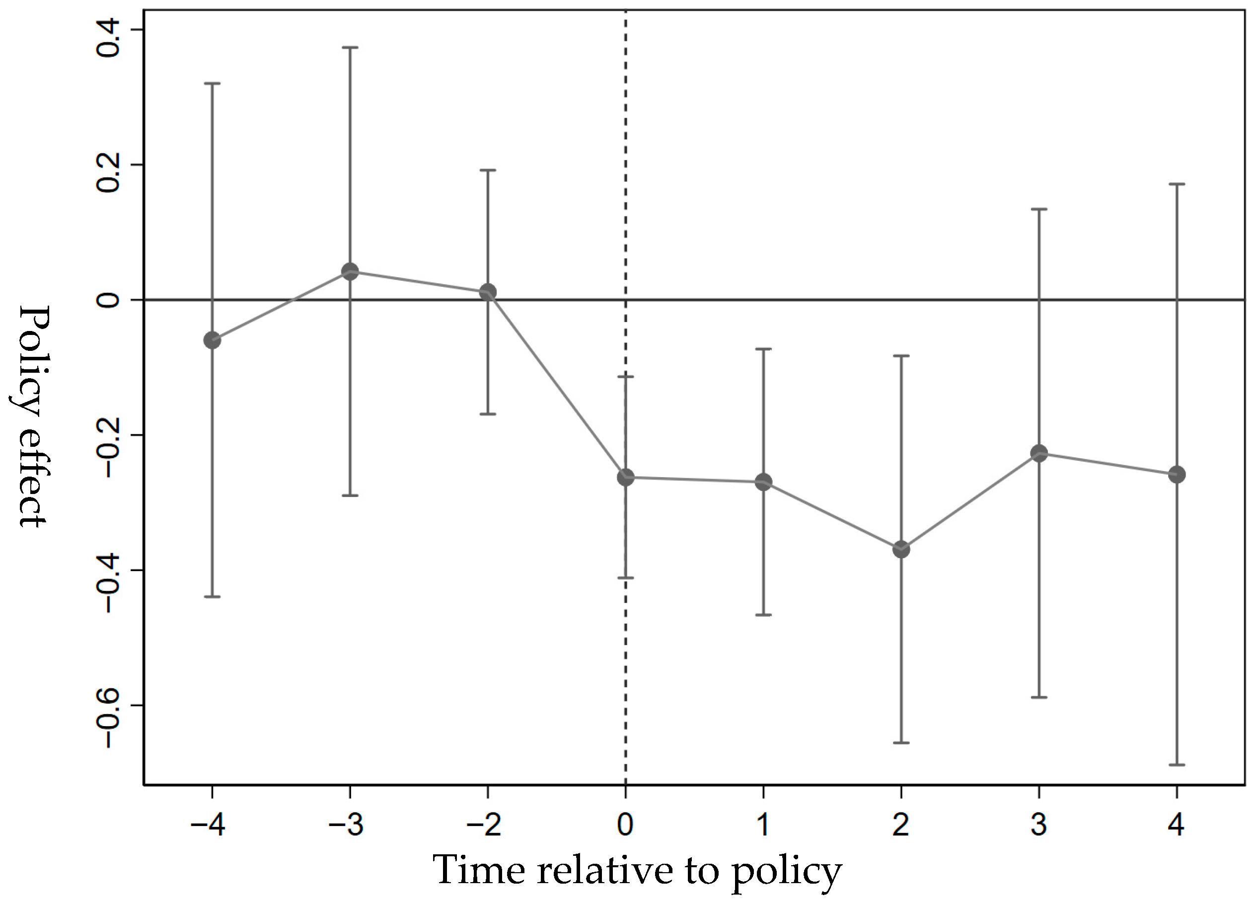 1. Parallel Trend Test. Following the event–study approach used by Beck et al. [