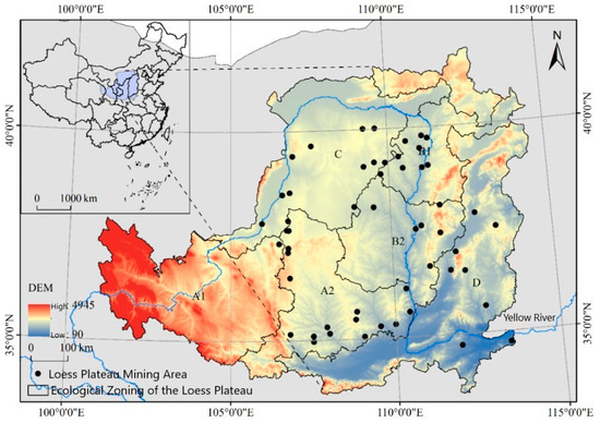 Ecological Regionalization of the LP. loess sorghum gully subregions, A1, A2; loess hilly and gully subregions, B1, B2; sandy land and agricultural irrigation subregion, C; earth-rock mountain and river valley plain subregion: D.