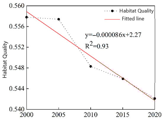 Temporal variation of habitat quality on the Loess Plateau from 2000 to 2020.