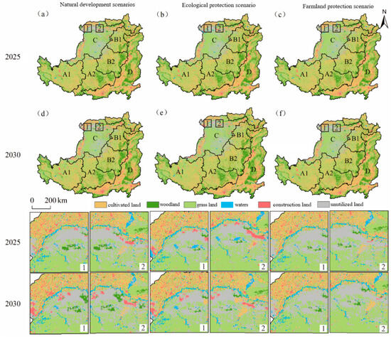 | Scenario | Cultivated Land | Woodland | Grass Land | Waters | Construction Land | Unutilized Land | |
