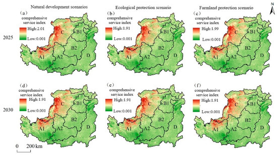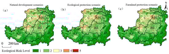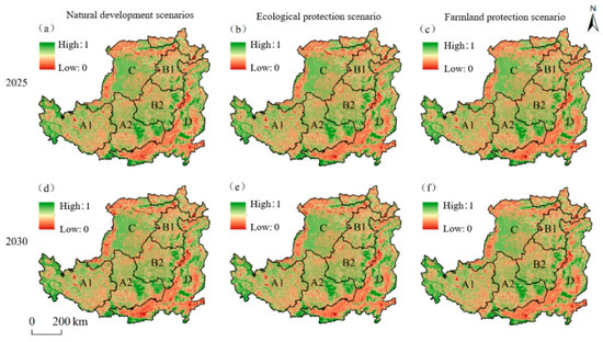 In the past 30 years, the urbanization rate of the Loess Plateau has increased by about 30%. The landscape structure of agriculture, animal husbandry and forestry in the process of urbanization has undergone complex changes, which have had a complex impact on ecosystems such as soil and water conservation [44]. “National Main Functional Area Plan” [45], “National Ecological Functional Area Zoning” [46], “Loess Plateau Comprehensive Management Plan Outline (2010–2030)” [47] Pointed out that the Loess Plateau is facing the pressure of arable land protection and the contradiction between urbanized land use, How to balance the relationship between urbanization, agricultural land and ecological protection has become the core issue of land use simulation. Combining the orientation of policy planning and the current situation of land use on the Loess Plateau, based on reference to relevant research [48,49], this paper sets up three land use scenarios, as follows: