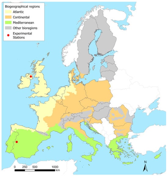 This study was conducted across the 27 Member States of the European Union (EU27), the United Kingdom (UK), and Switzerland (CH), with a specific focus on the Atlantic, Continental, and Mediterranean biogeographical regions (collectively referred to as EU3B) (