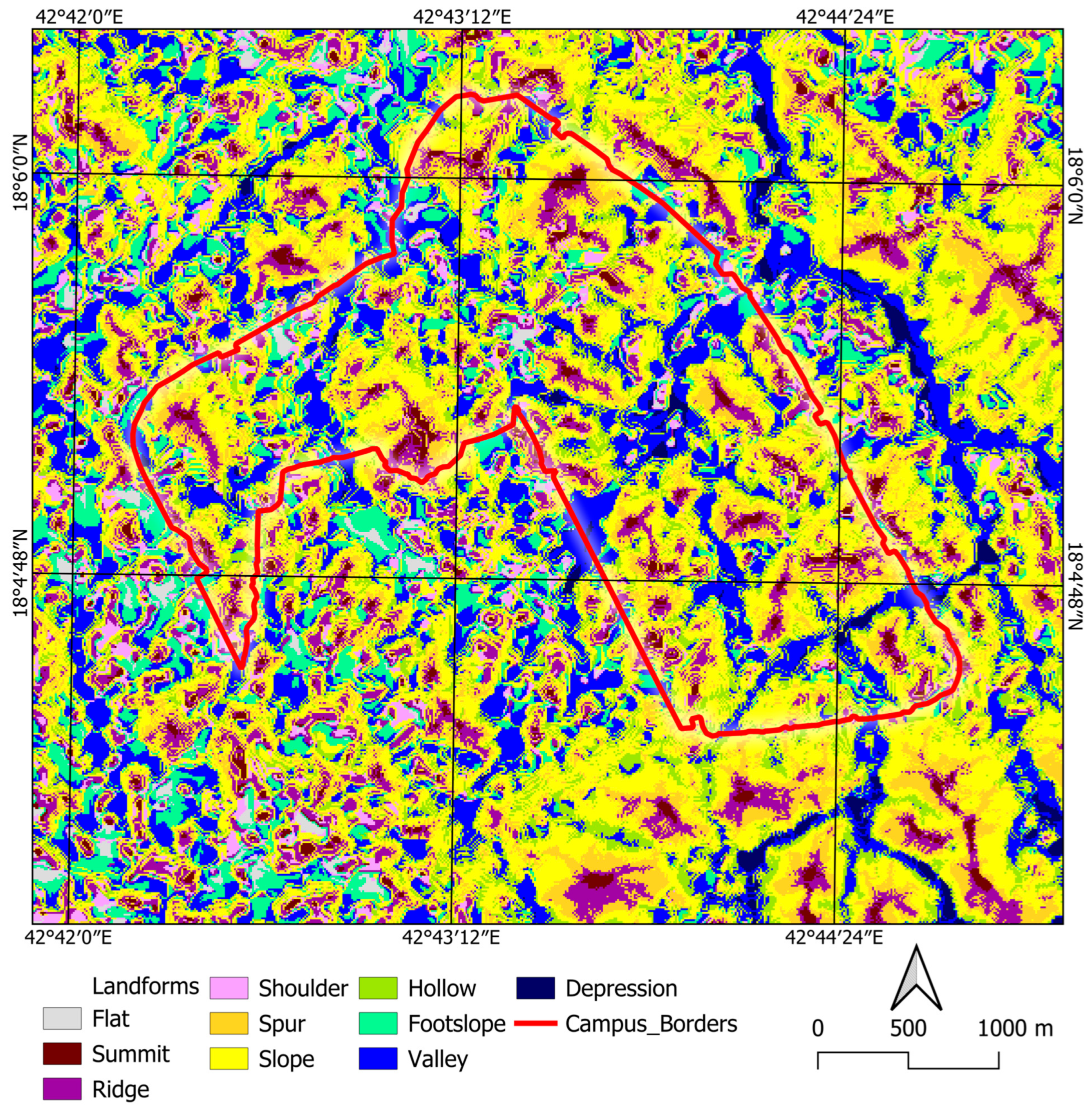 2.5. Mapping and Classification of Landforms