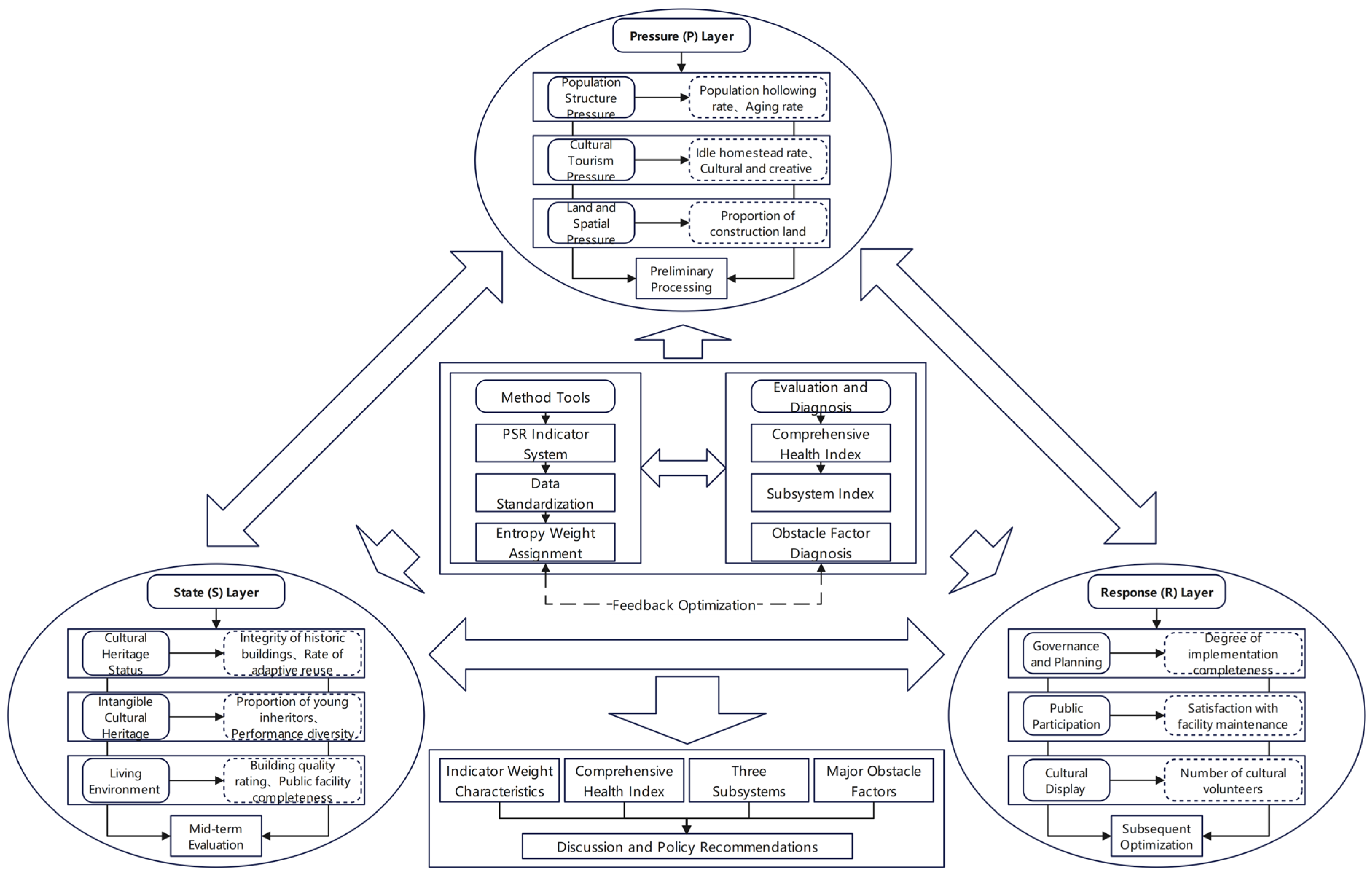 - Response (R): the feedback measures taken by communities or governments through governance mechanisms, planning policies, and public participation to mitigate pressure and improve system resilience.