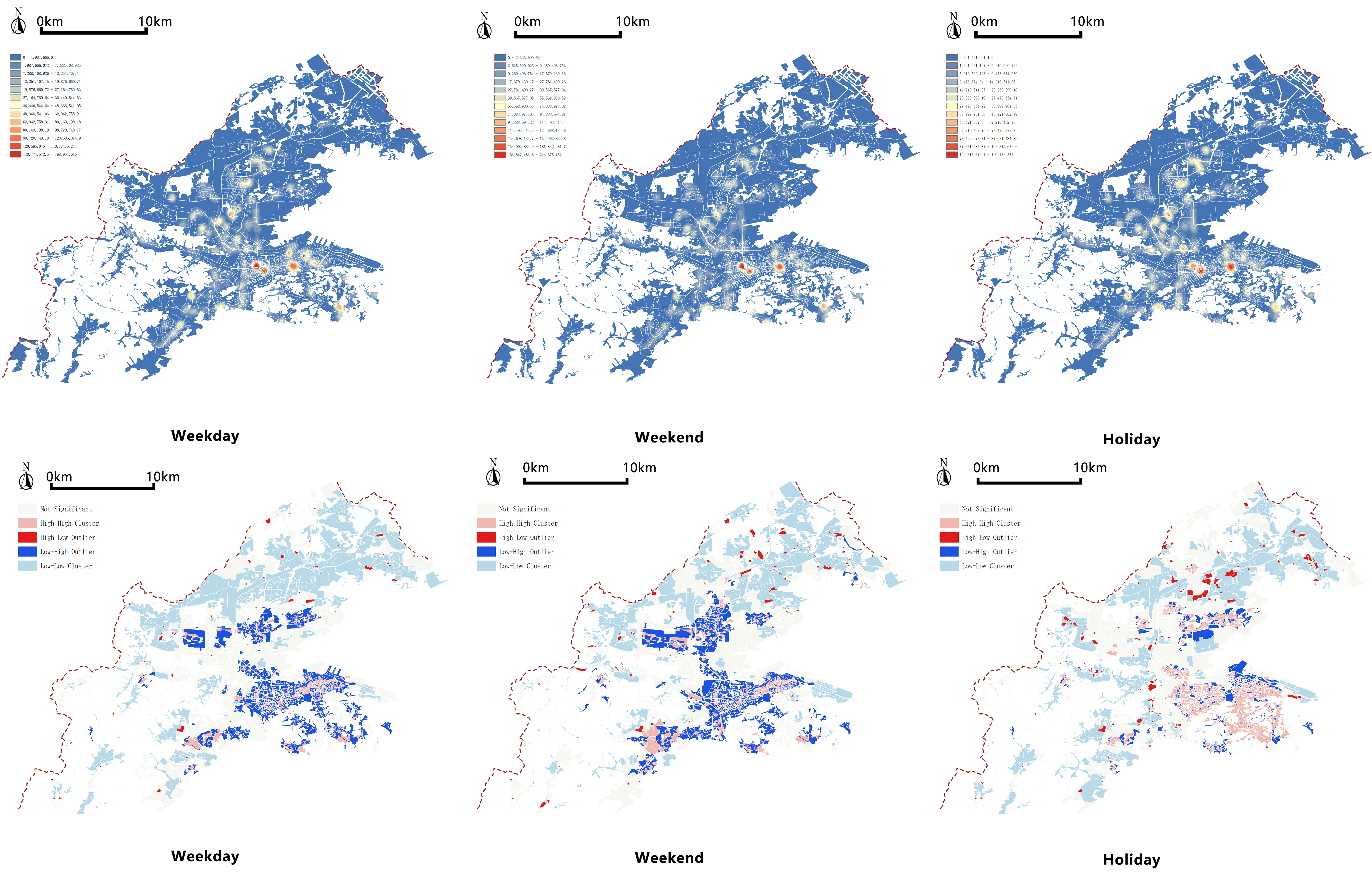The classification threshold for each park type was defined by the average values of its respective category. For instance, within the community park category, a park was classified as “High-High” if both its total activity volume and spatial aggregation degree exceeded the average values calculated for all community parks. Conversely, parks falling below both averages were classified as “Low-Low”.