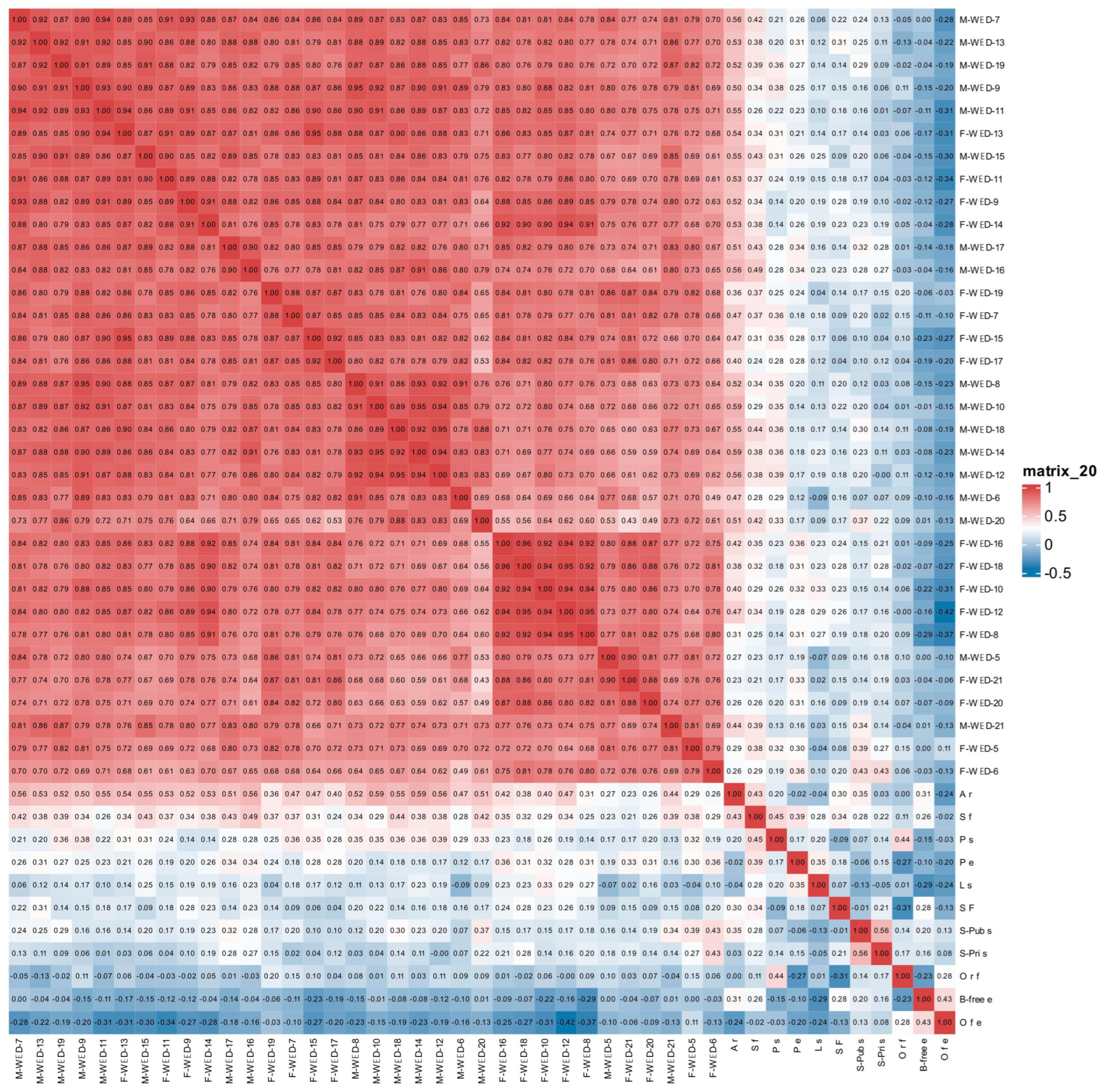 Table 6. Correlation analysis between spatial characteristics of males/females and park area across different day types.
