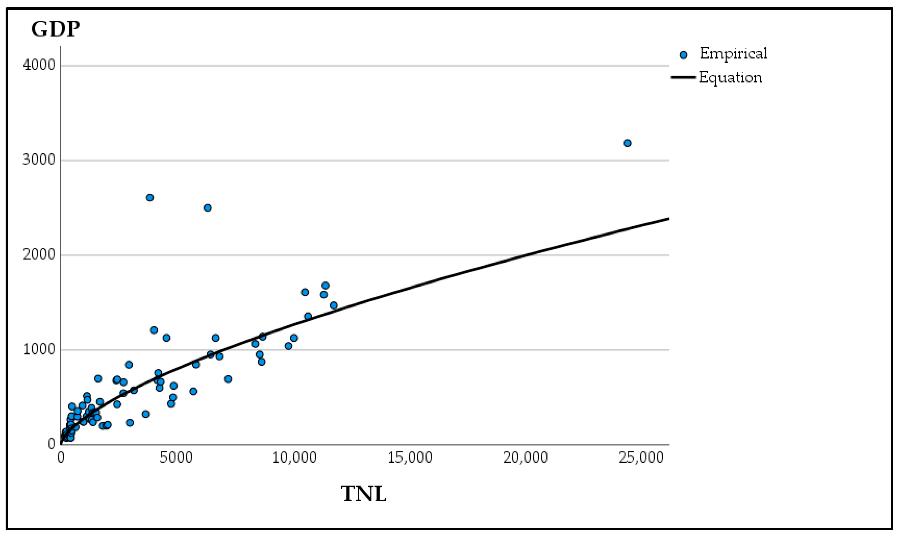 - Chen, J.; Gao, M.; Cheng, S.; Hou, W.; Song, M.; Liu, X.; Liu, Y. Global 1 km× 1 km gridded revised real gross domestic product and electricity consumption during 1992–2019 based on calibrated nighttime light data. Sci. Data 2022, 9, 202. [Google Scholar] [CrossRef]