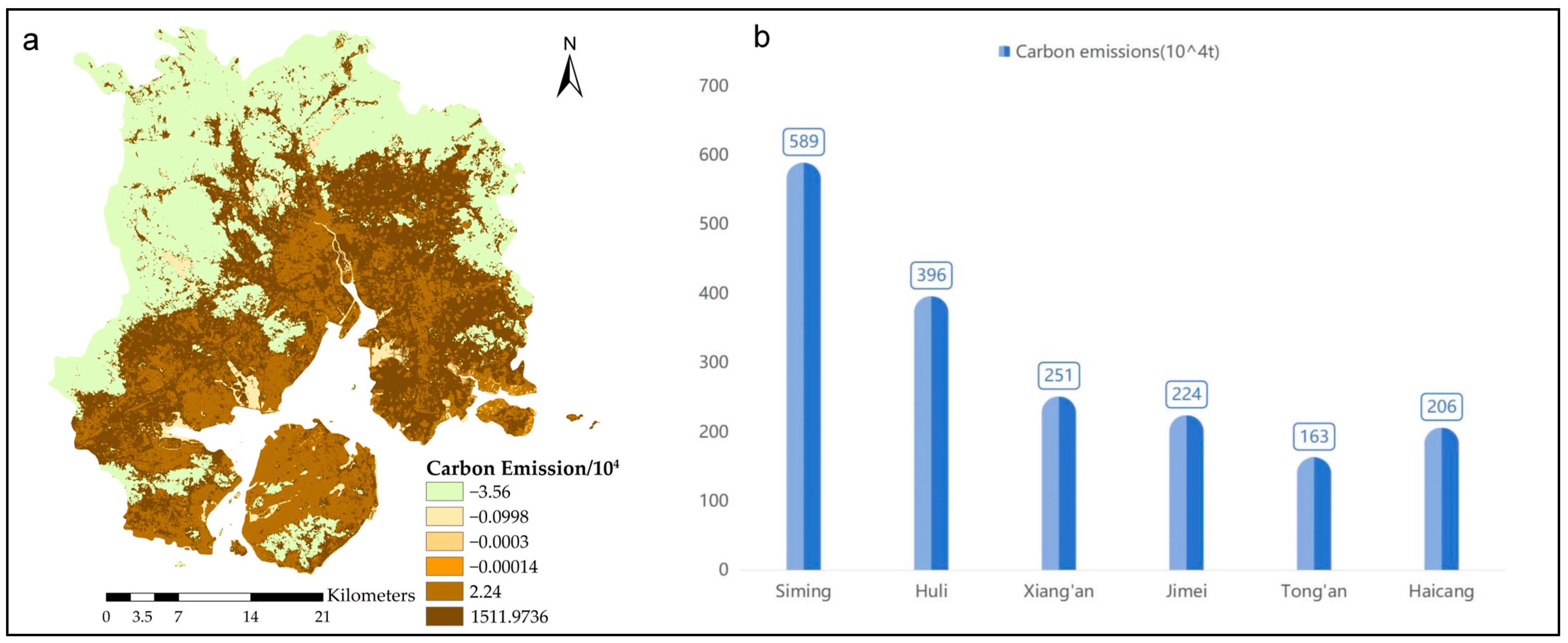 4. Spatial Pattern Characteristics of Carbon Sources and Sinks in Xiamen City