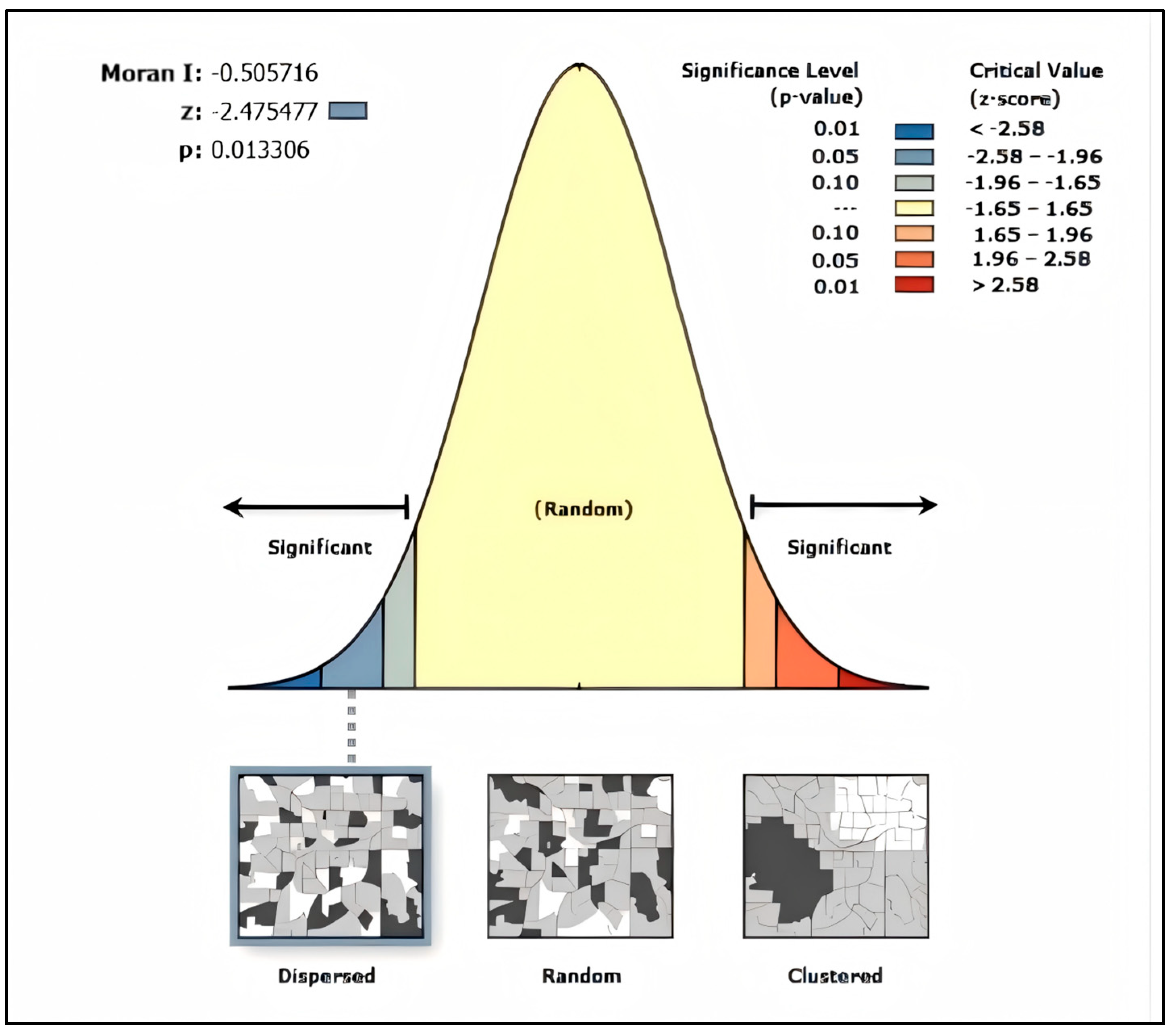 - Spatial Correlation and Zoning: Spatial autocorrelation analysis reveals a significant negative spatial autocorrelation in carbon emissions, presenting a heterogeneous and fragmented pattern rather than clustered distributions. Carbon balance zoning indicates that carbon source regulation zones dominate (70% of the area), with fragmented governance posing challenges to systematic emission reduction.