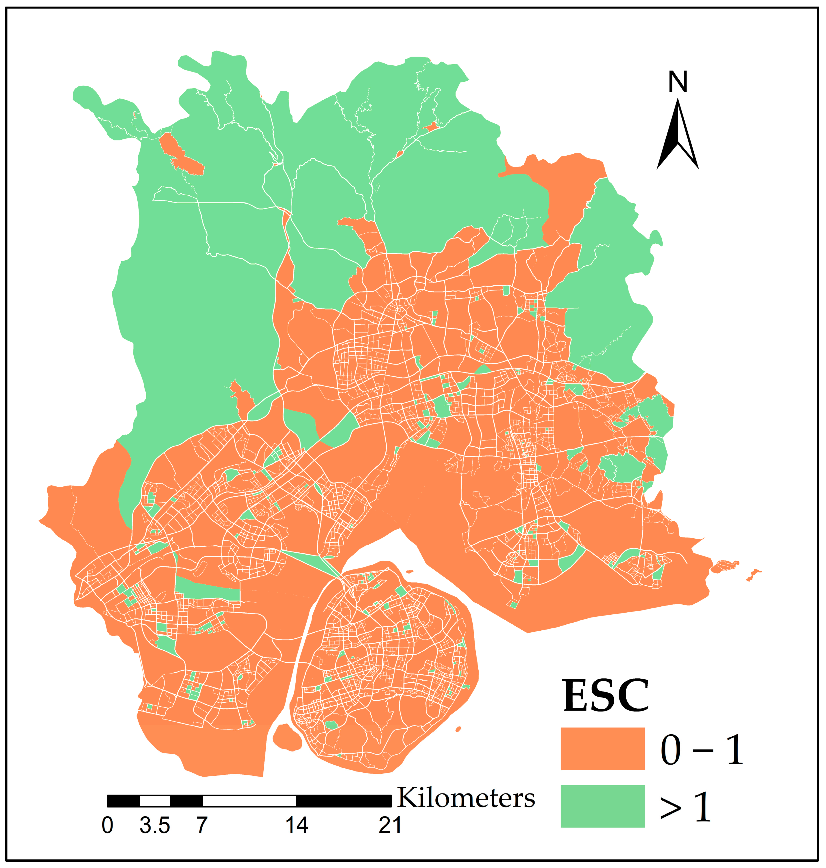 2.3.5. Ecological Support Coefficient of Carbon Emissions (ESC)
