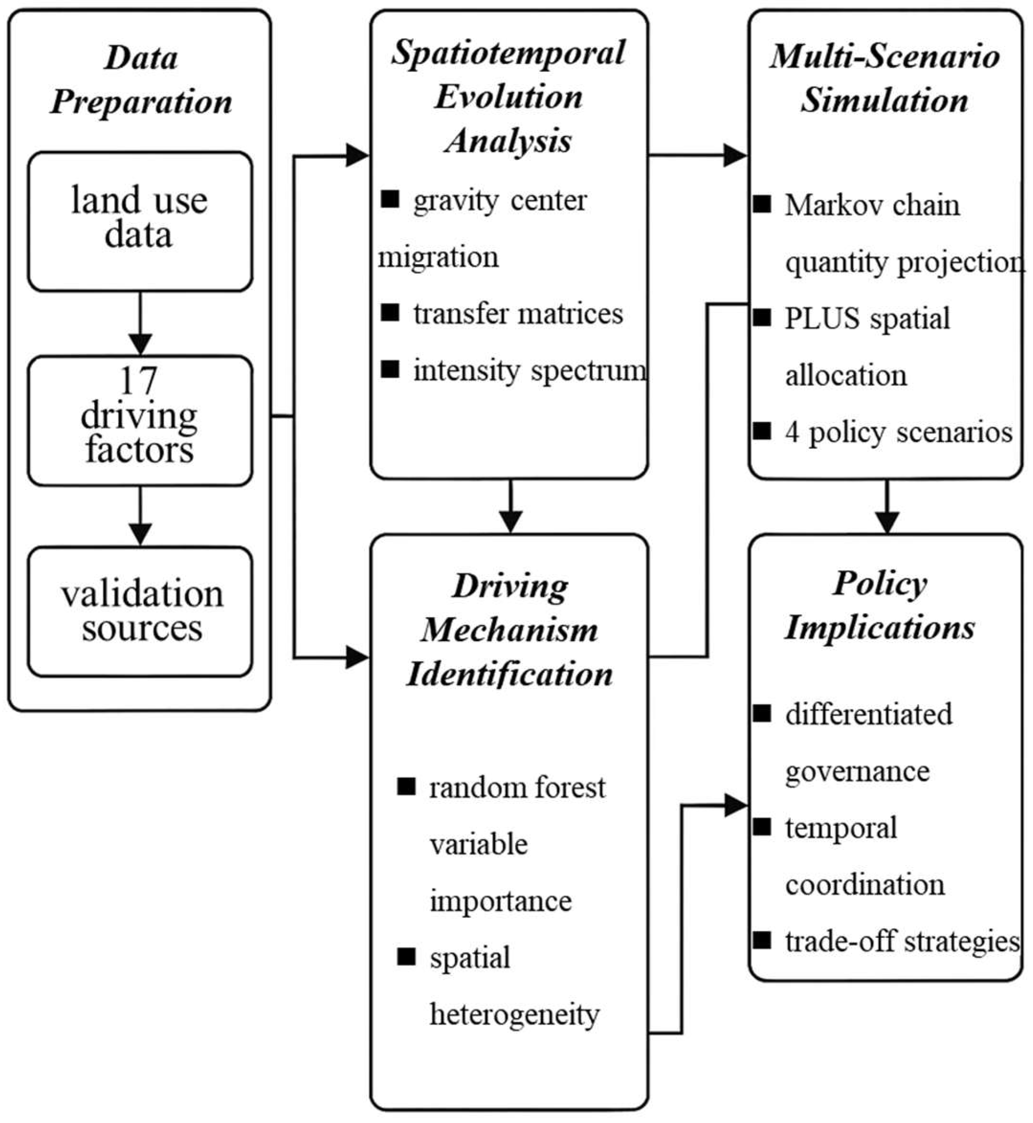 Gao C, Li S, Bao H, Zhang Y. Multi-Dimensional Driving Mechanisms and Scenario Simulation of Production-Living-Ecological Space Evolution in Urban Agglomerations of China: Evidence from the Guanzhong Plain. Land. 2025; 14(11):2201. https://doi.org/10.3390/land14112201