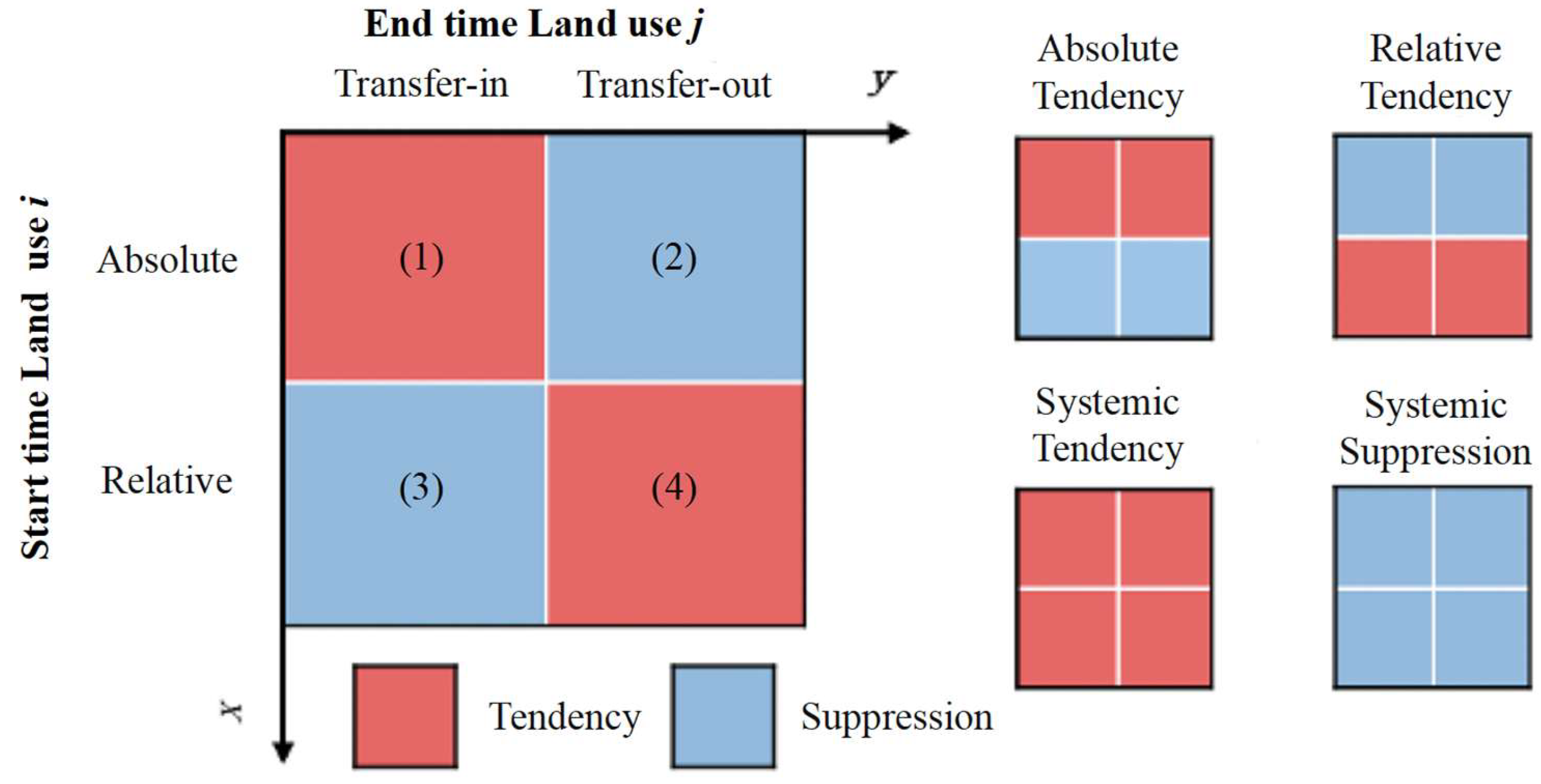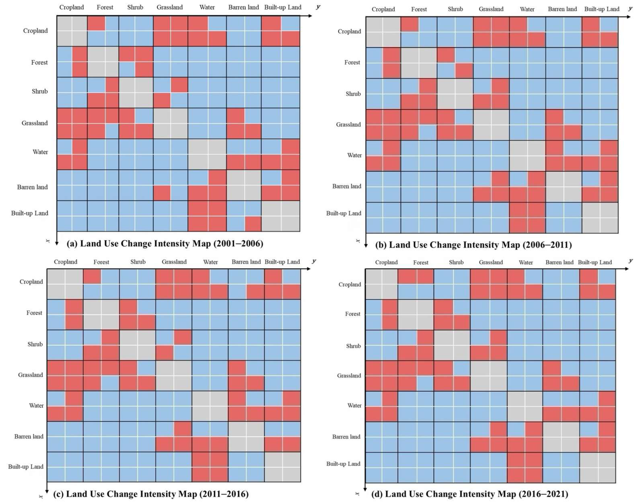 4.2. Land Use Transfer Dynamics and Intensity Analysis