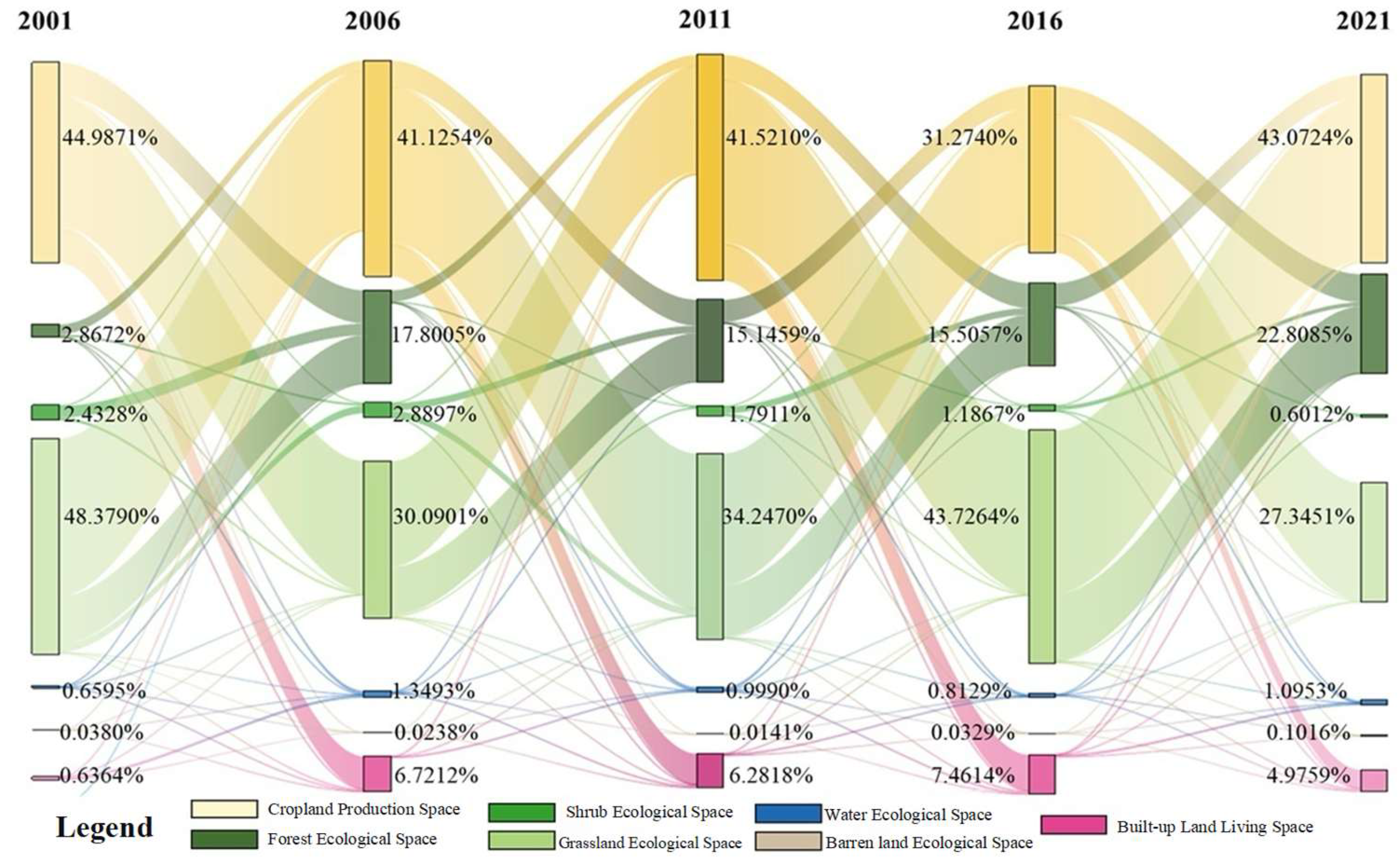 | Grassland Ecological Space | −1.05% | 0.07% | −0.29% | −1.55% | −2.72% |