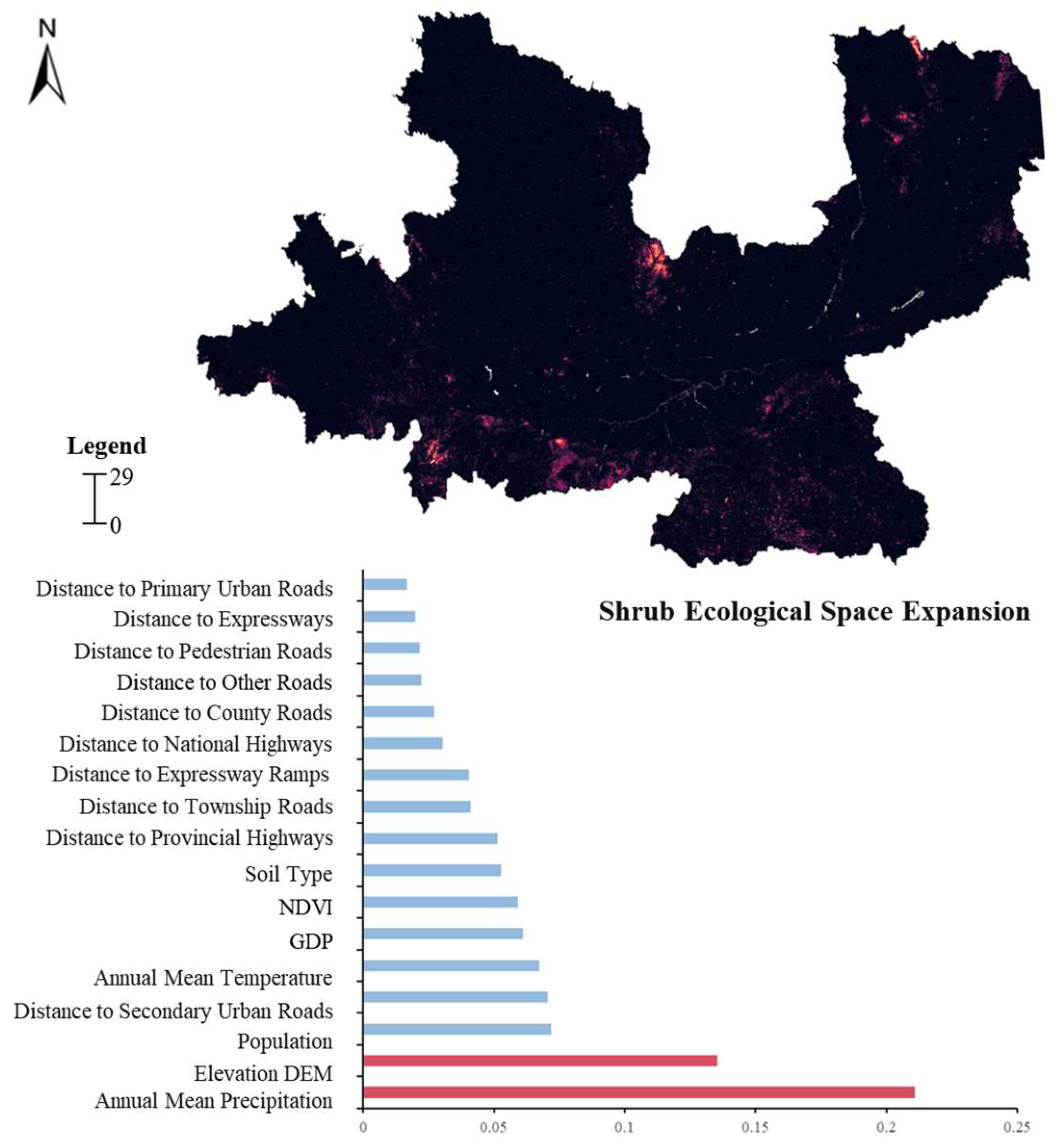 4.3.3. Driving Factors of Shrubland Ecological Space Expansion