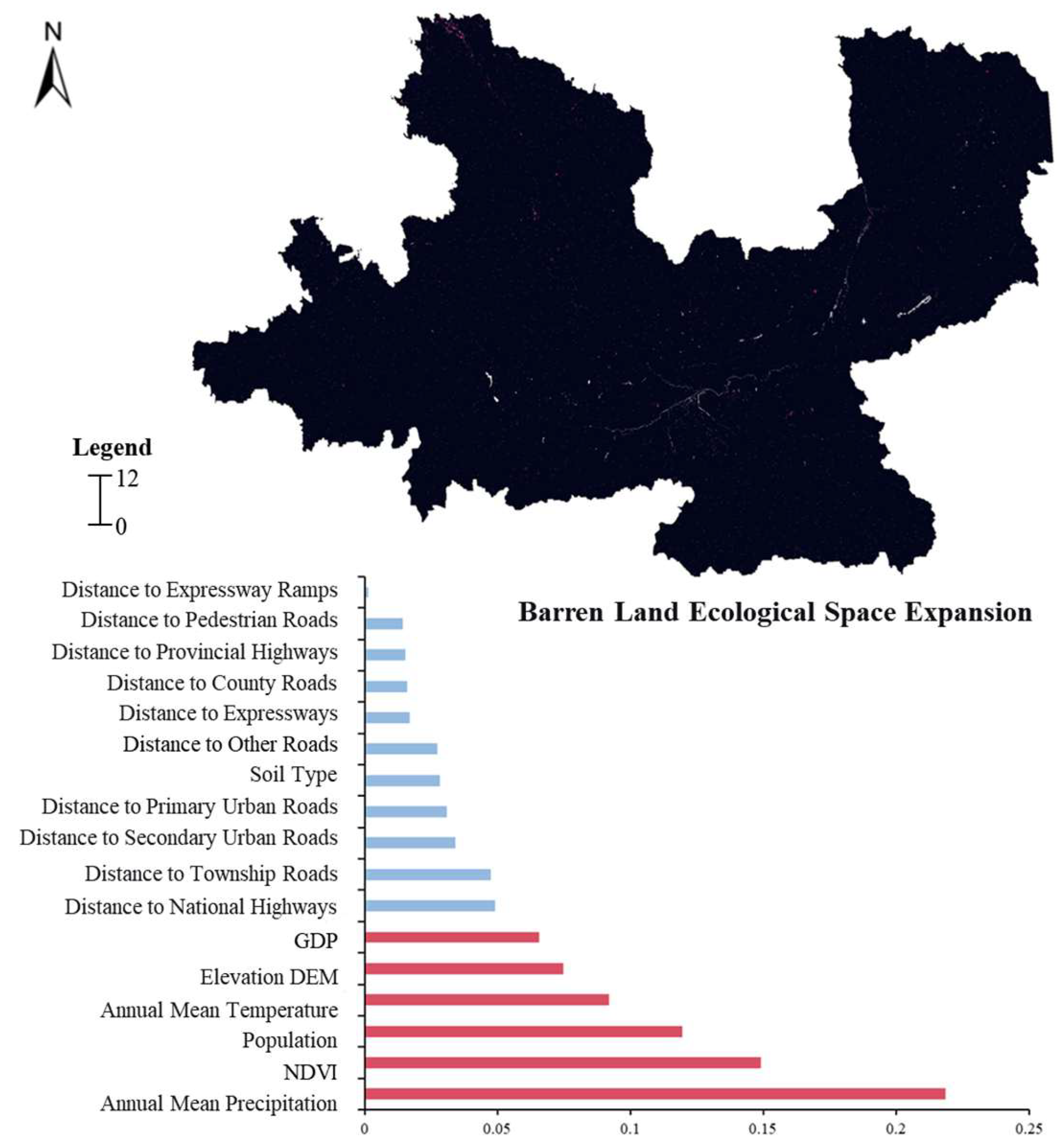4.3.6. Driving Factors of Barren Land Ecological Space Expansion