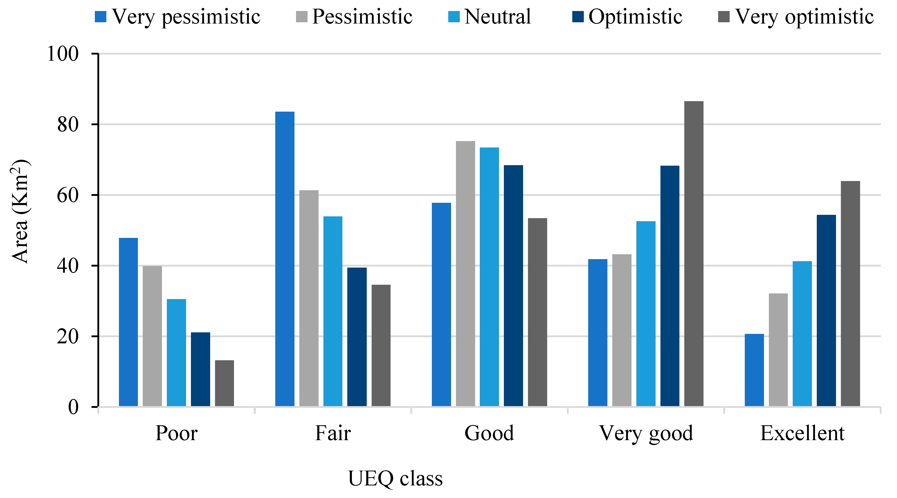 3.2.5. Evaluation and Spatial Analysis of UEQ Variations Across Scenarios