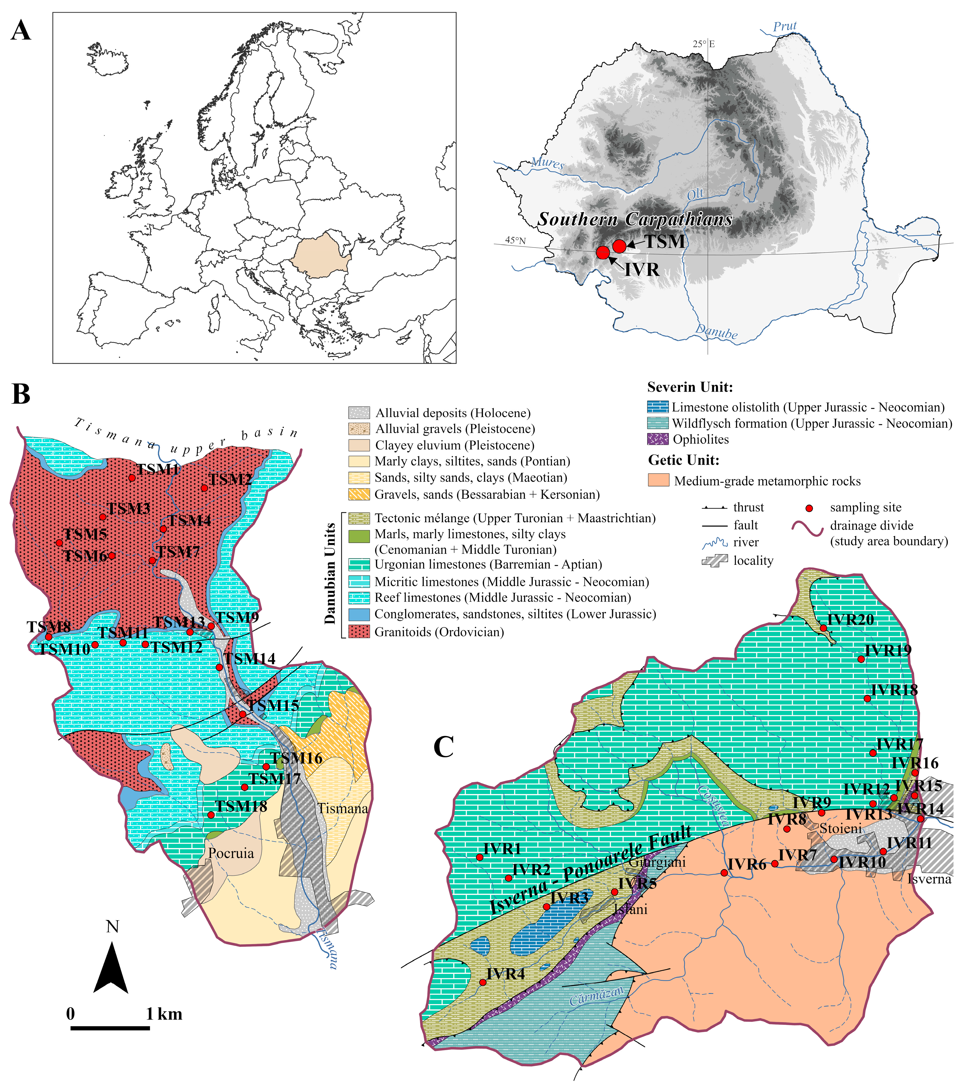 - Pop, G.B.T.; Marinescu, F.; Stănoiu, I.; Hîrtopanu, I. Geological Map of Romania 1:50,000, Tismana Sheet; Geological Institute of Romania: Bucharest, Romania, 1975. [Google Scholar]