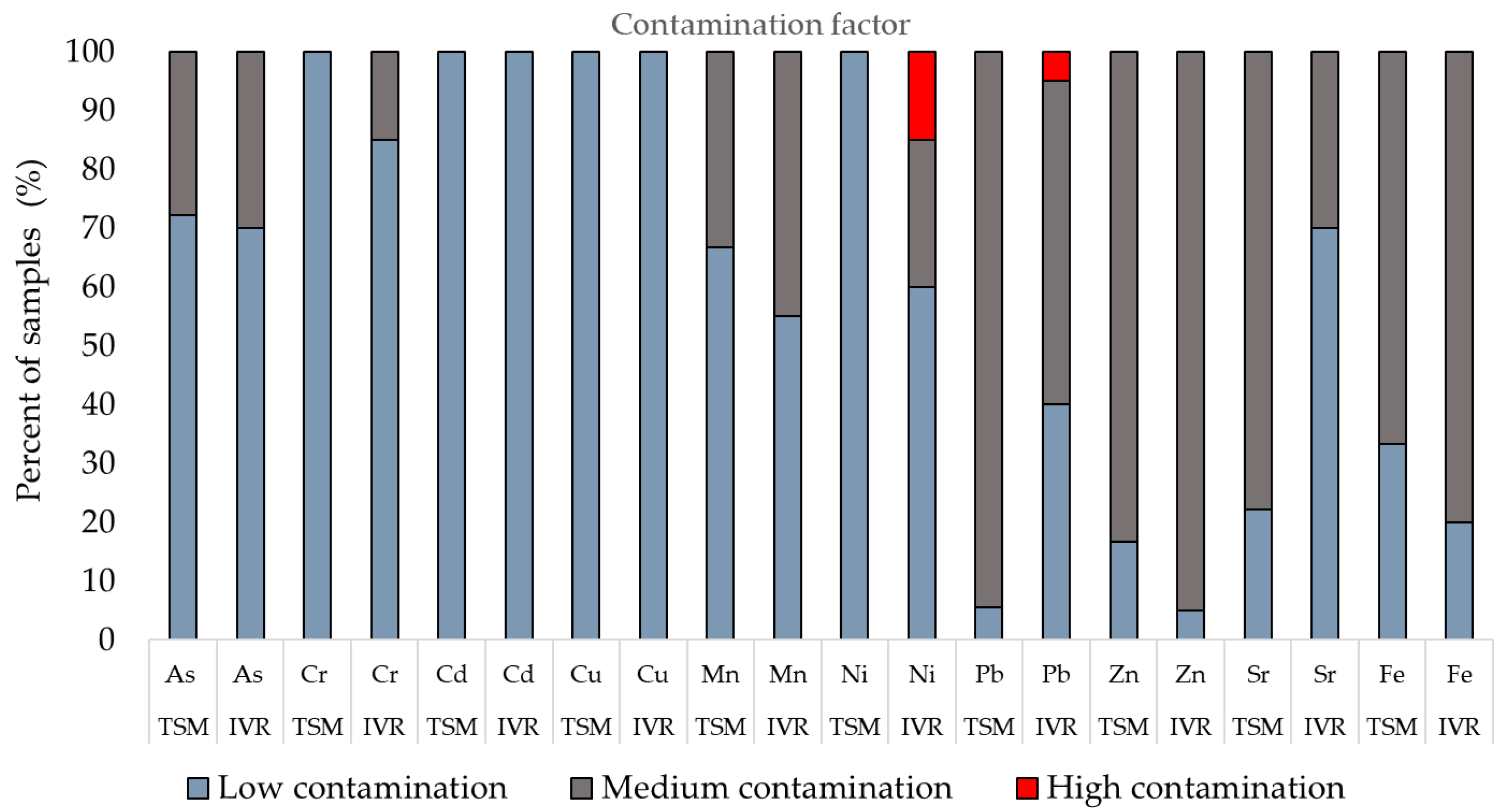 | CF | CF ≤ 1 | Low contamination | [53] |