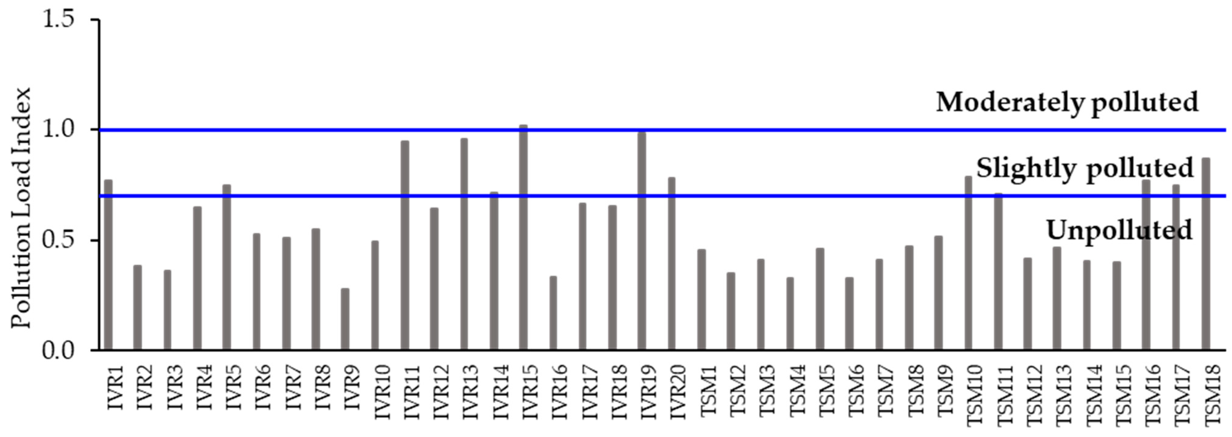 | PLI | PLI < 0.7 | Unpolluted | [60] |