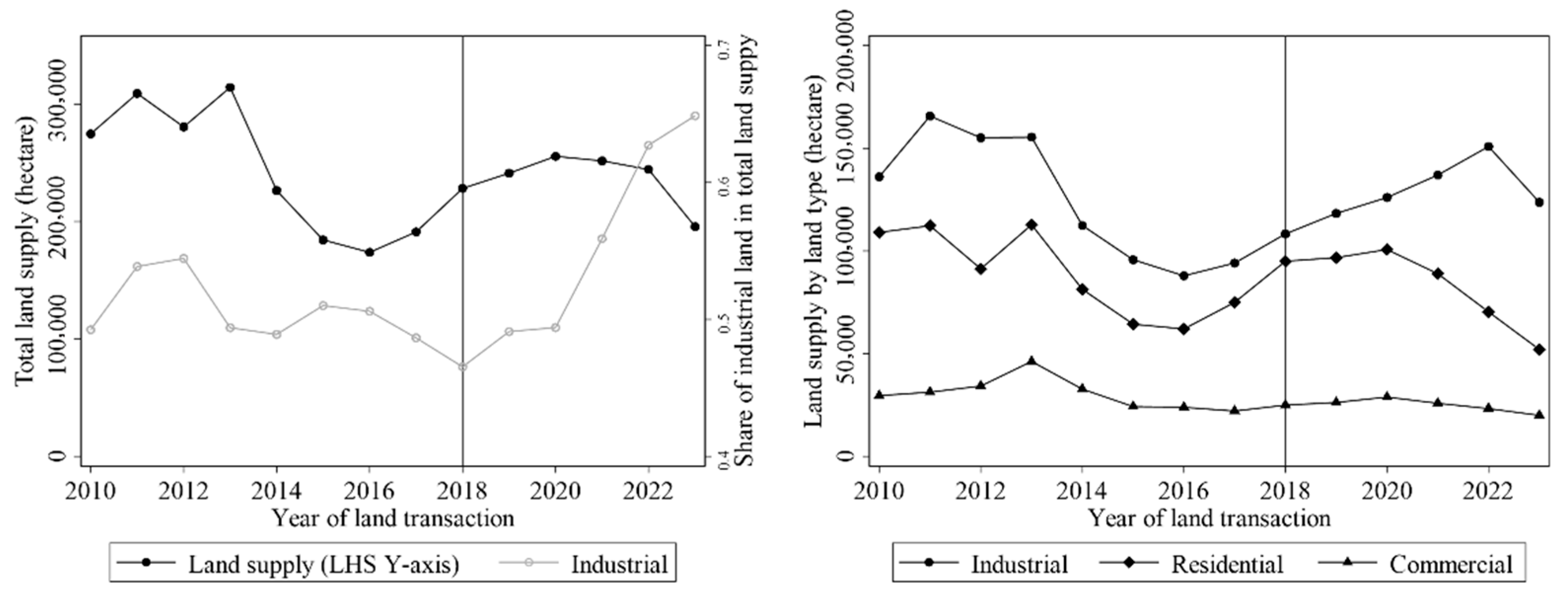 | 6. | Local governments tend to prioritize industrial land because of its perceived role in attracting investment and fostering growth, whereas they take a more cautious stance toward commercial land. Industrial parcels are often subsidized or allocated strategically to attract firms, while commercial land is subject to stricter market discipline and administrative oversight, reflecting concerns about speculative activity and inefficient land use. |