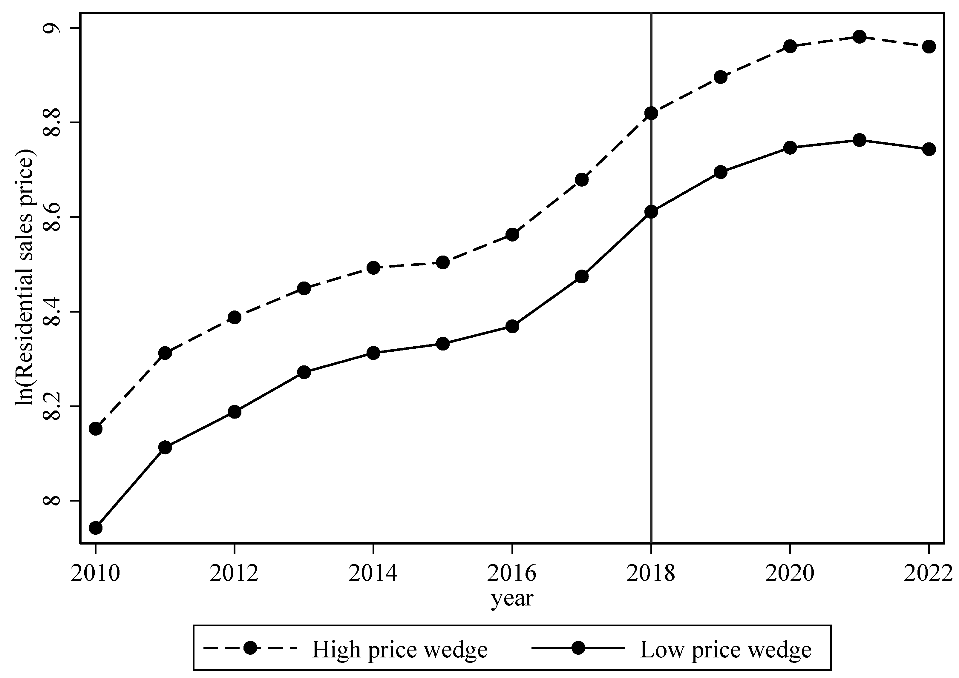 | 1. | Housing prices maintained an upward trend with no notable shift around 2018 (Figure A1 of Appendix A), implying that the regulation policy induced simultaneous leftward shifts in both the demand and supply curves for residential property. |