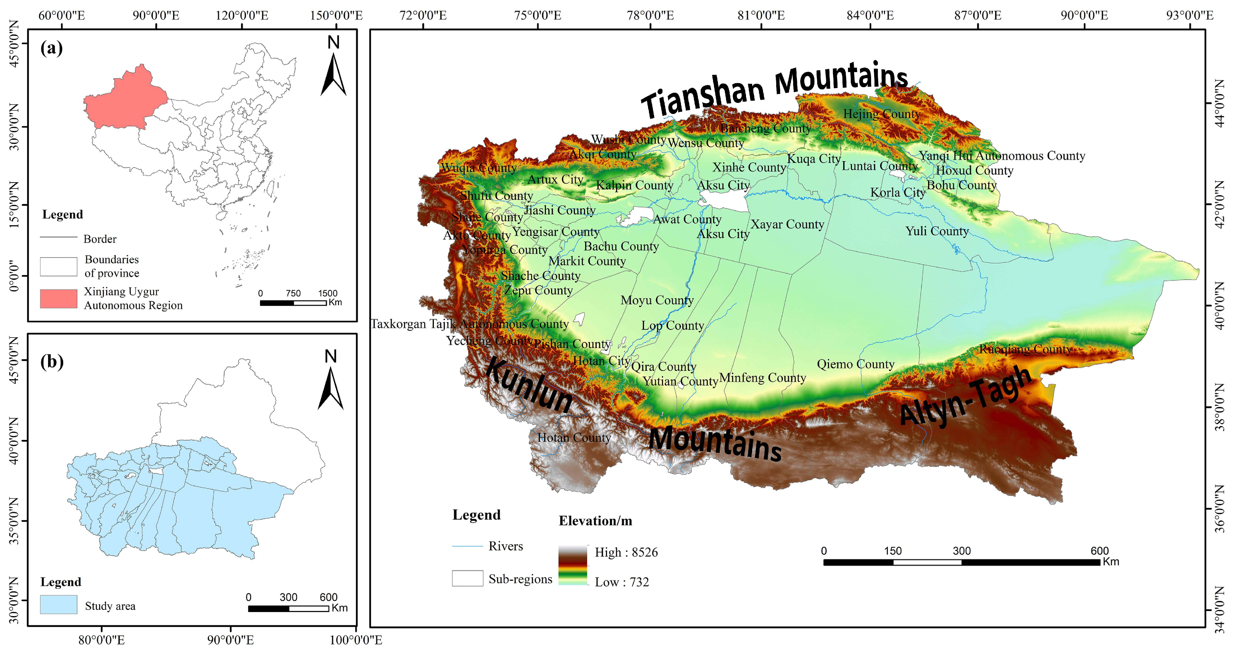 - Sun, M.; Shen, X.; Xu, H.; Shajiang·Aili, A. Dynamics of ecosystem service values in the tarim river basin. Front. Environ. Sci. 2025, 12, 1484950. [Google Scholar] [CrossRef]