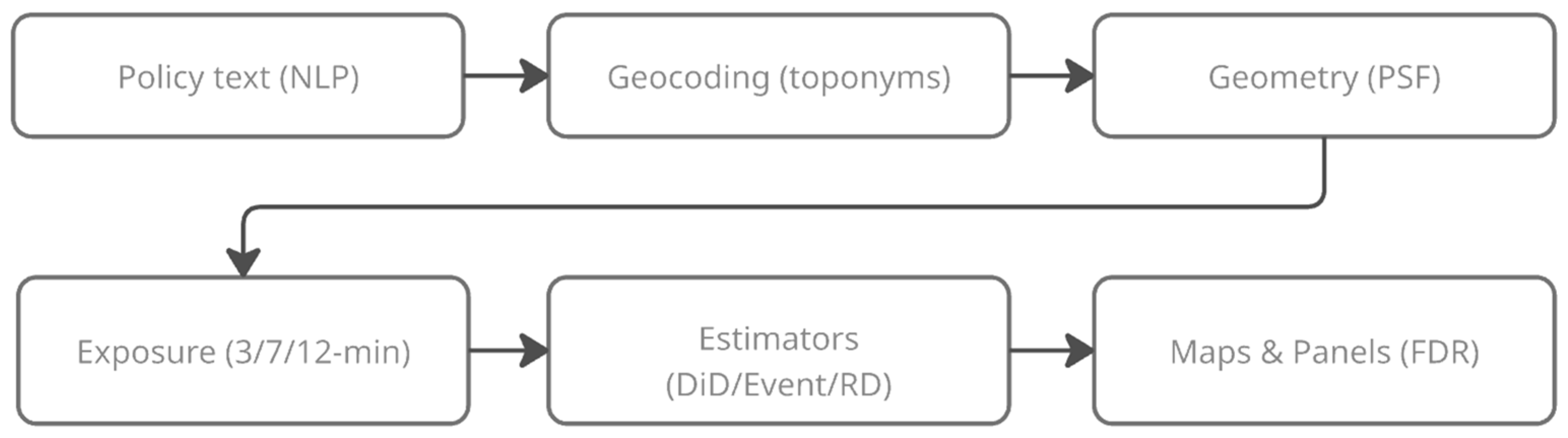 Chicago/Turabian StyleXie, Ming, Xiaoxiao Liao, and Tetsuya Yaguchi. 2025. "The Policy Spatial Footprint: Causal Identification of Land Value Capitalization Using Network-Time Exposure" Land 14, no. 11: 2240. https://doi.org/10.3390/land14112240