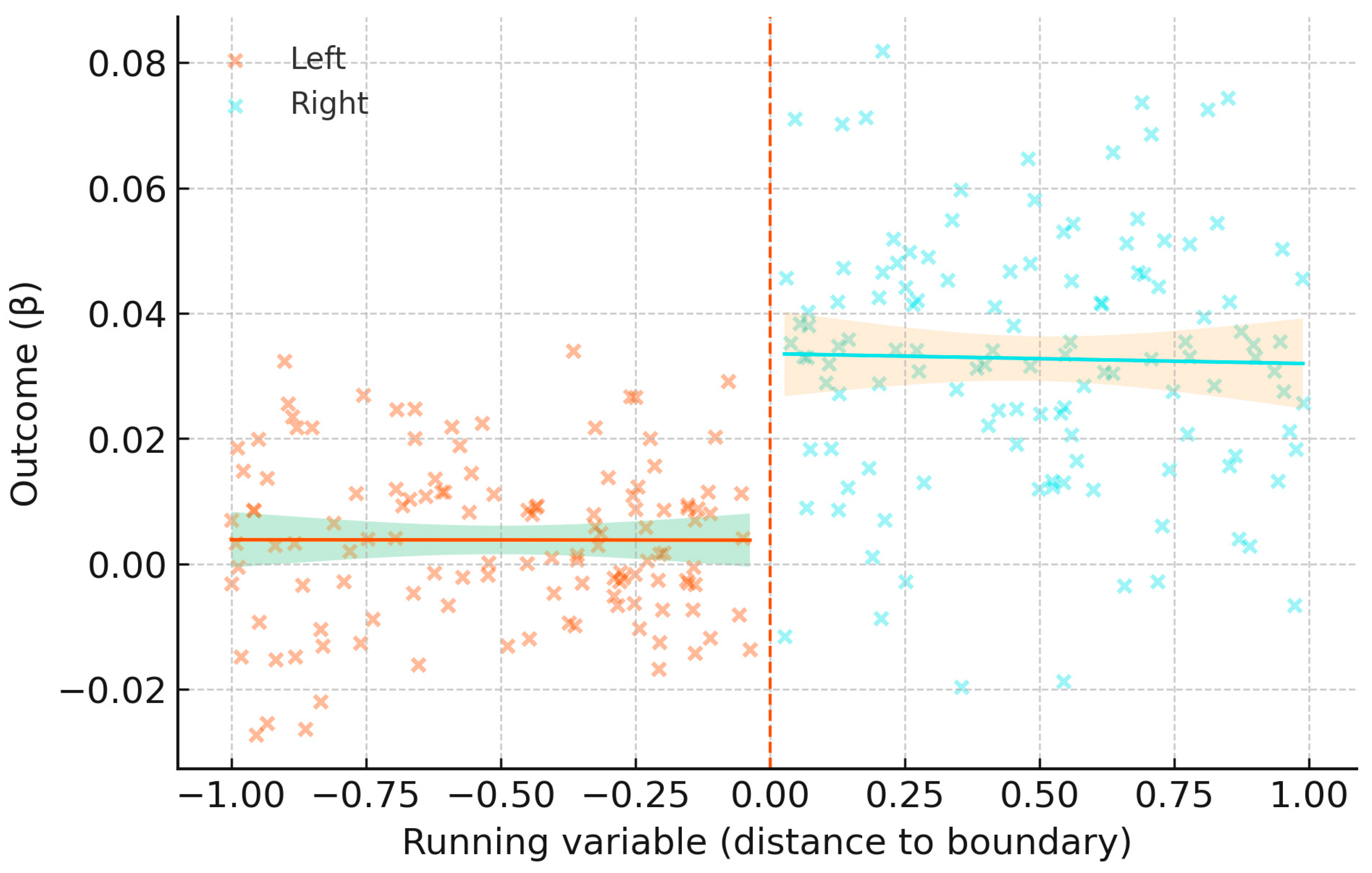 | Pseudo-boundary RD (median across 200) | 0.001 [IQR −0.008, 0.010] |