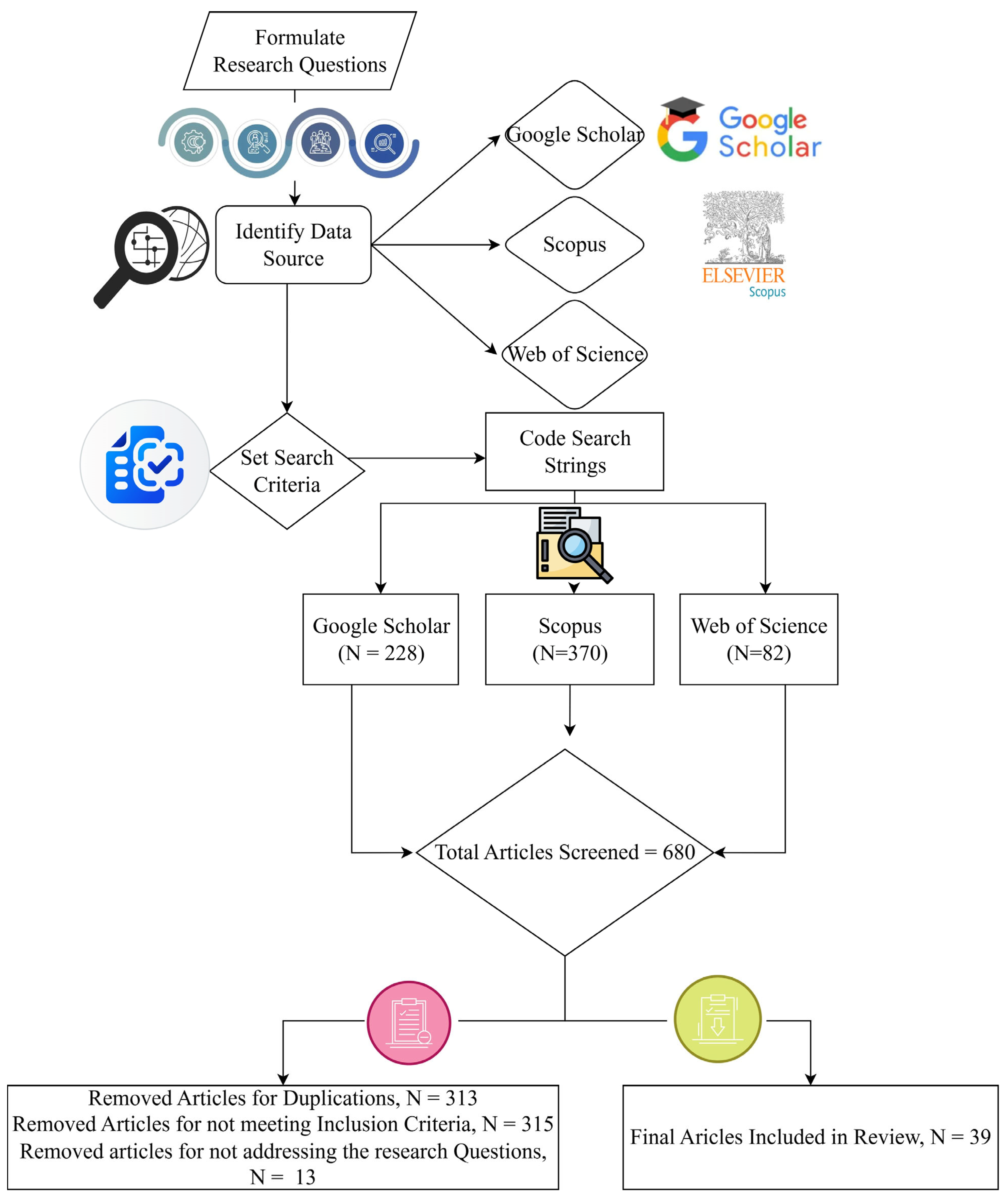 - Pollock, D.; Peters, M.D.J.; Khalil, H.; McInerney, P.; Alexander, L.; Tricco, A.C.; Evans, C.; De Moraes, É.B.; Godfrey, C.M.; Pieper, D.; et al. Recommendations for the Extraction, Analysis, and Presentation of Results in Scoping Reviews. JBI Evid. Synth. 2023, 21, 520–532. [Google Scholar] [CrossRef] [PubMed]