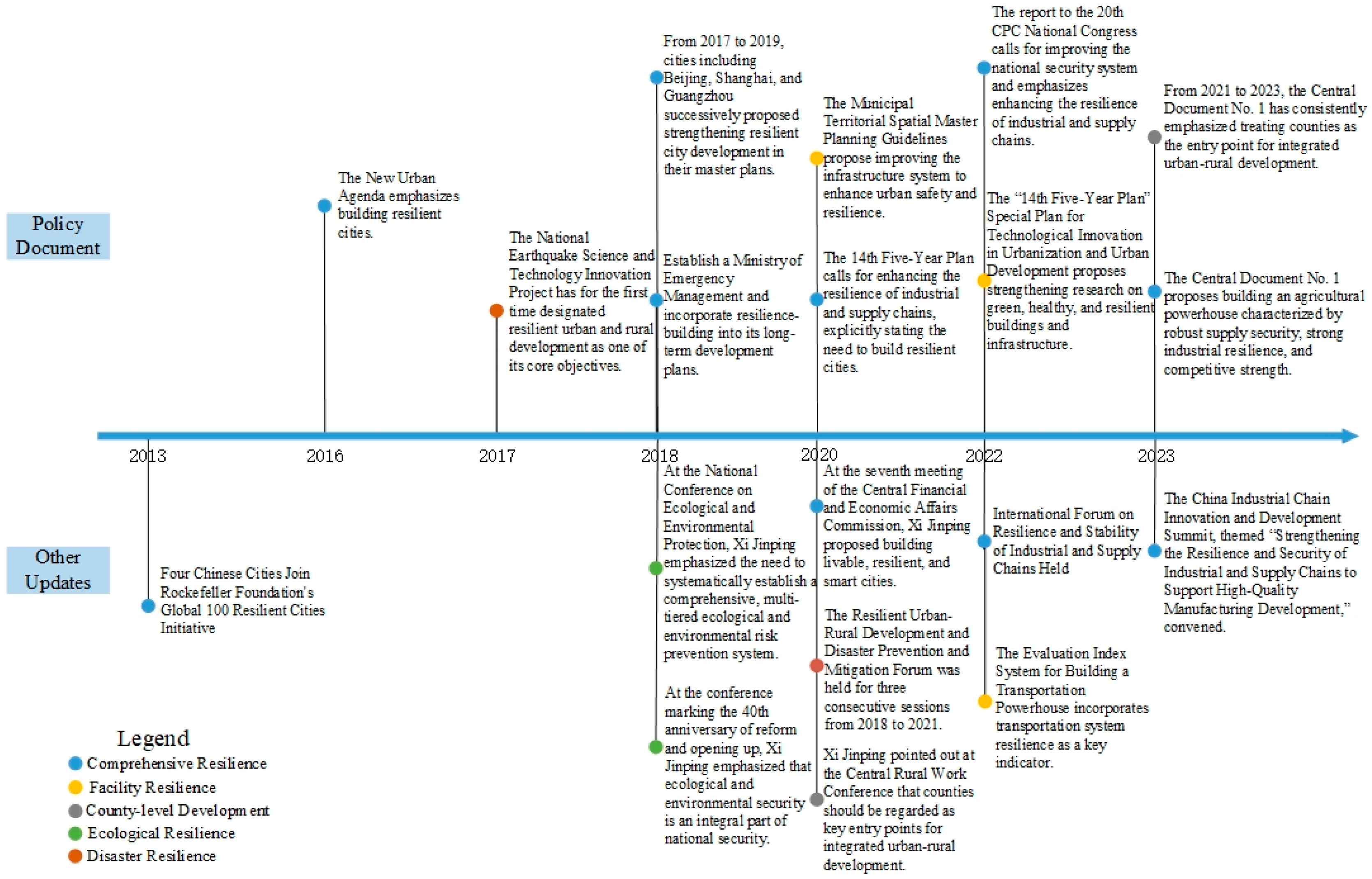 Derived from the Latin term “resilio”, meaning to rebound or spring back, the concept of resilience was initially adopted by physicists to describe the stability of materials and their resistance to external impacts [6]. With the rise of systems thinking, resilience was progressively extended to disciplines such as engineering and ecology, where its definition diversified according to the field of study. In engineering, resilience is defined as “engineering resilience”—the ability of a system to return to a state of equilibrium or stability following a disturbance [7]. In ecology, it is termed “ecological resilience”, referring to the magnitude of disturbance a system can absorb without undergoing structural change [6]. Subsequently, resilience research permeated socio-ecological domains, with evolutionary resilience framing it as the capacity of complex social-ecological systems to adapt, adjust, and transform in response to pressures [8]. Building on this conceptual evolution, studies on resilience have since expanded to encompass economic, technological, cultural, and infrastructural dimensions [9], giving rise in the field of social governance to prominent research themes such as urban resilience [1], community resilience [10], and disaster resilience [11]. Nevertheless, the applicability of these global frameworks often depends on national institutional contexts, which shape how resilience is manifested and operationalized in practice. In this regard, China offers a distinctive case.