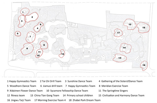 A qualitative study was conducted using the Toolkit for the Ethnographic Study of Space (TESS). A total of 35 respondents, including park visitors, park managers, Volunteer Association members, and relevant experts, were interviewed. The interviews focused on satisfaction with park management, experiences of park usage, restrictions encountered, daily activities, and respondents’ sense of belonging. Field observations further examined 18 resident activity networks and the role of the Volunteer Association in coordinating shared use of space. Observations conducted with volunteer organisations further explored the frequency of park activities and the variables influencing that frequency. Complementary field observations were carried out with volunteer organisations to examine patterns of spatial use, activity frequency, and organisational dynamics.