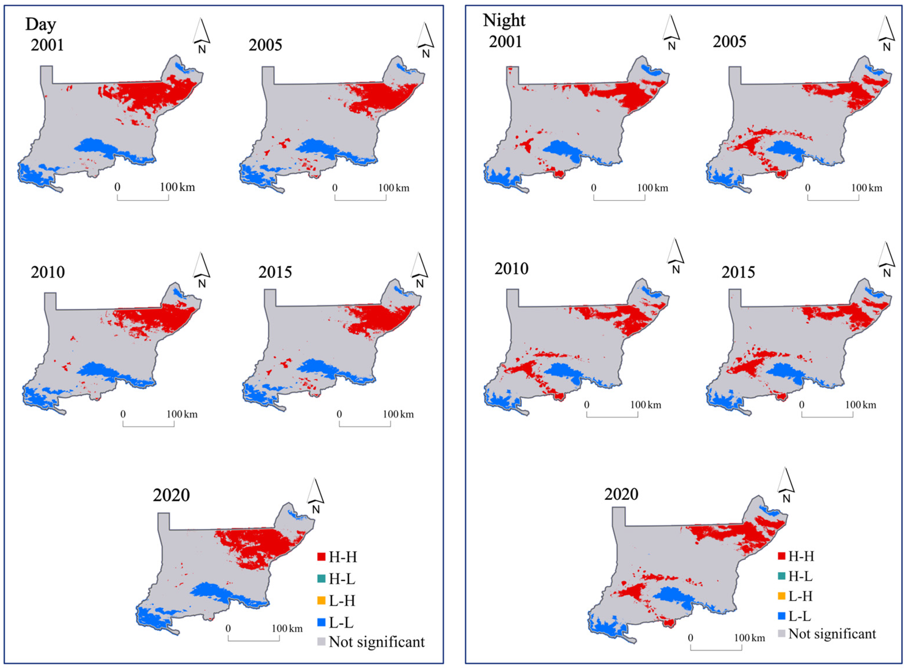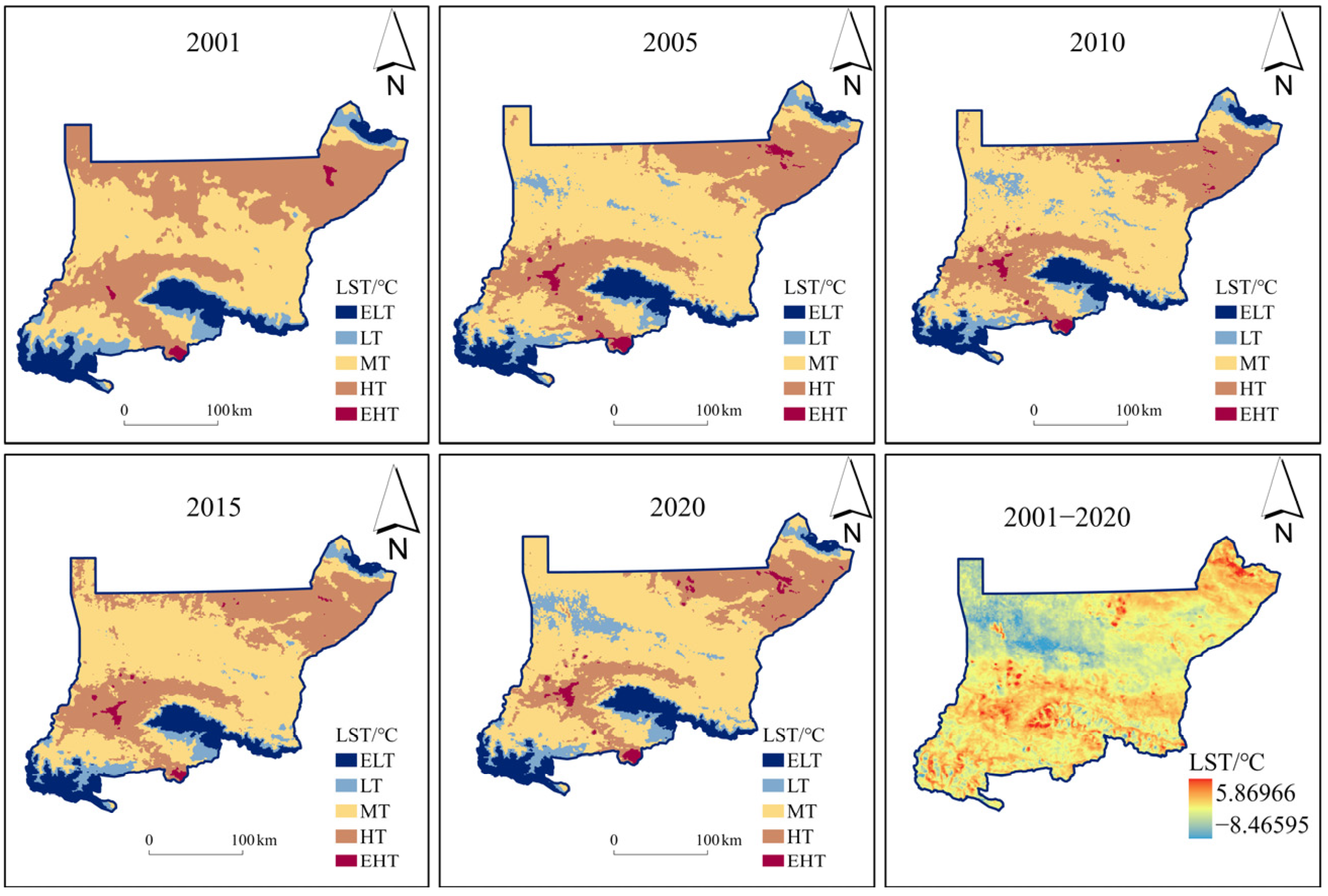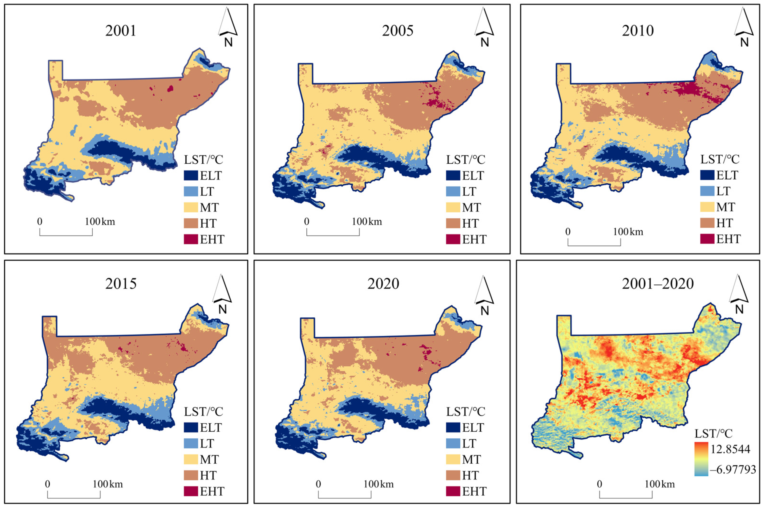3.2.1. Daytime and Nighttime LST from 2001 to 2020