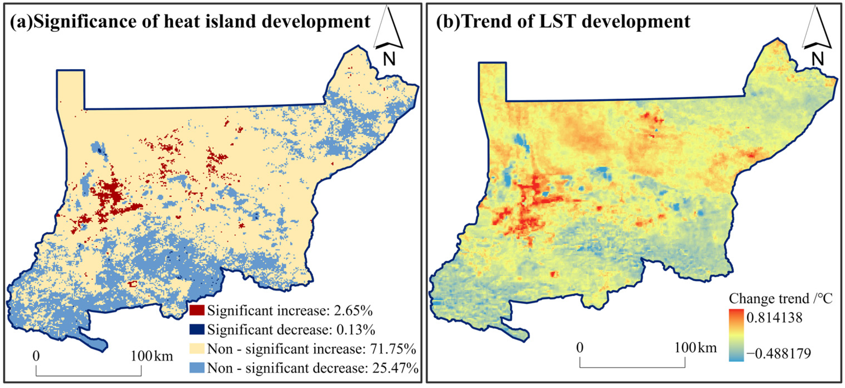 - Zhang, M.; Cao, Y.; Zhang, Z.; Zhang, X.; Liu, L.; Chen, H.; Gao, Y.; Yu, F.; Liu, X. Spatiotemporal variation of land surface temperature and its driving factors in xinjiang, China. J. Arid. Land 2024, 16, 373–395. [Google Scholar] [CrossRef]